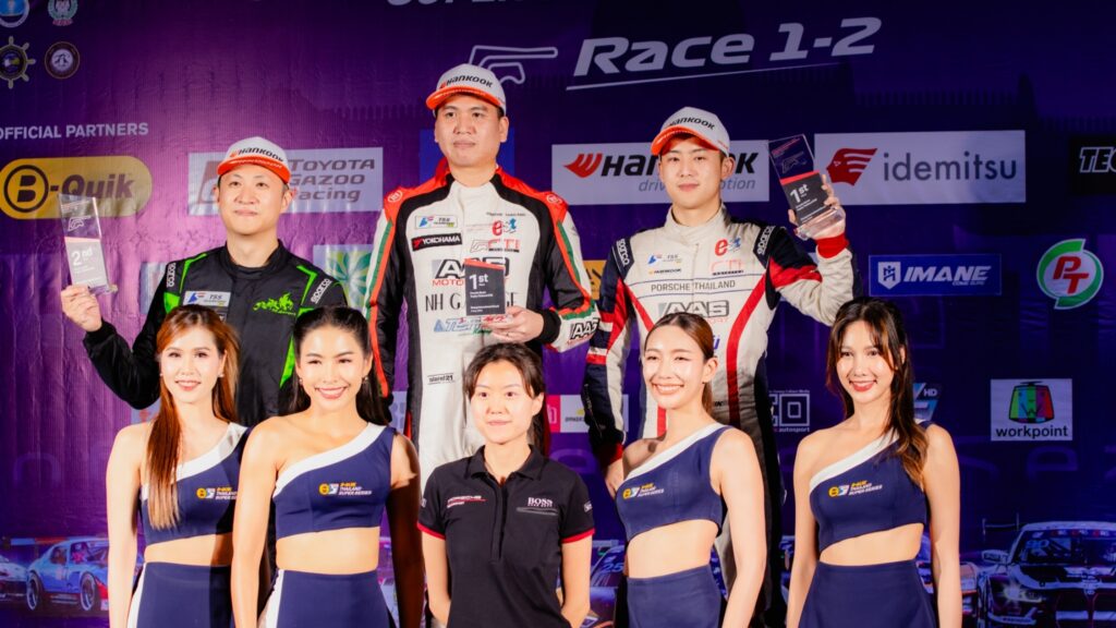 รถยนต์ Porsche 718 Cayman GT4 RS Clubsport หมายเลข 18 ลงแข่งขันในรุ่น Thailand Supercar GT4 ขับโดย บูม กันตธีร์ กุศิริ นักแข่งดีกรีแชมป์ ที่ฉายเดี่ยวโชว์ฟอร์มการขับได้อย่างยอดเยี่ยมในสนามนี้ และรถยนต์ Porsche 992 GT3 Cup หมายเลข 17 ลงแข่งในรุ่น Thailand Supercar GTM โดยมี 2 นักแข่งที่ผนึกกำลังลงสนามดวลความเร็ว คือ สุกี้ – ณัฐจักร์ หาญจิตต์เกษม และ มิกกี้ – คมิก กรรณสูต แชมป์เก่าที่ร้างสนามไปกว่า 5 ปี