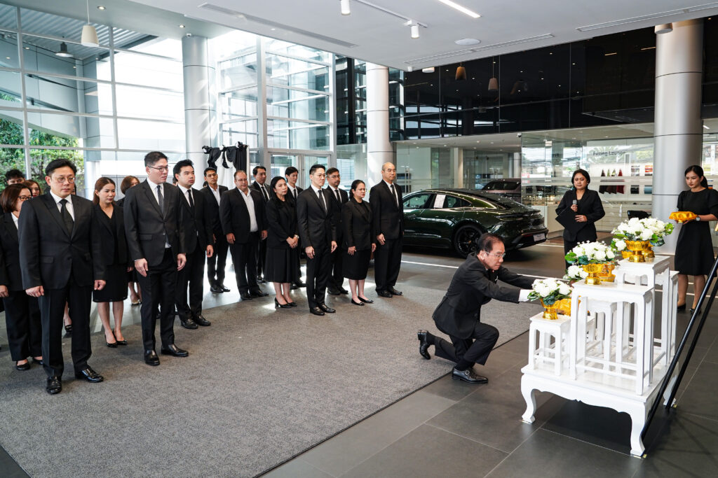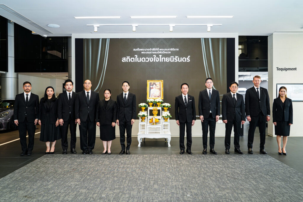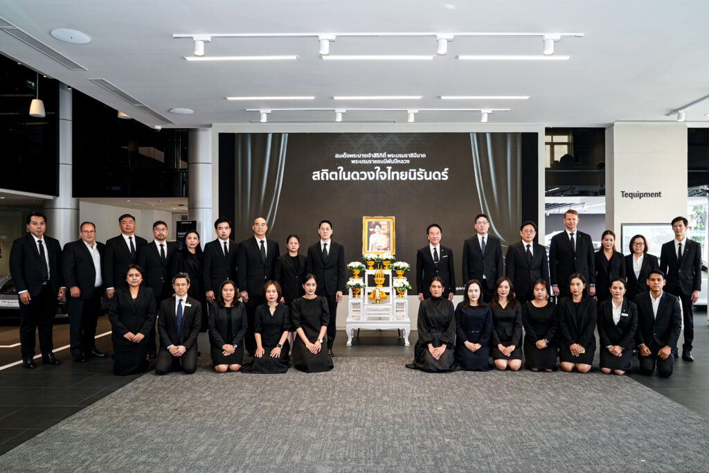 ภายในพิธี คณะผู้บริหารและพนักงานได้ร่วม ยืนสงบนิ่งเป็นลำดับแรก เพื่อถวายความอาลัยต่อการเสด็จสู่สวรรคาลัยของพระองค์