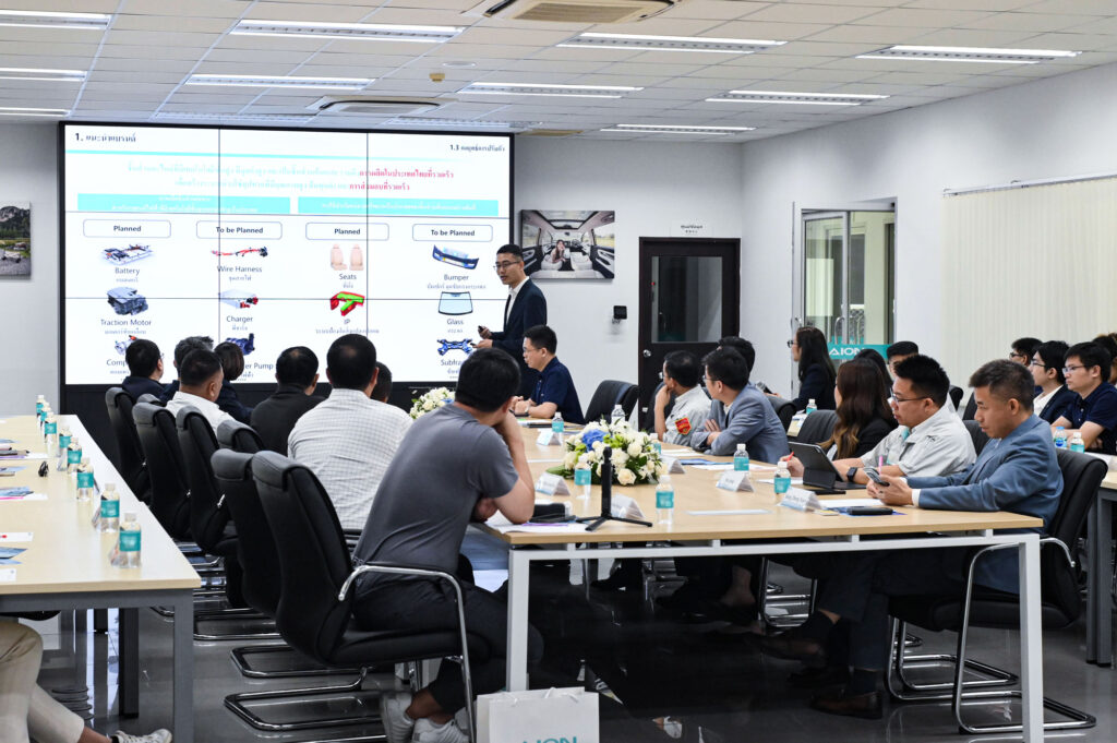 ระหว่างการเยี่ยมชม ผู้เข้าร่วมได้รับการแนะนำเกี่ยวกับแบรนด์ AION และทิศทางกลยุทธ์ของบริษัท พร้อมบรรยายถึงความสำคัญของการพัฒนารถยนต์ไฟฟ้าเพื่อตอบโจทย์ตลาดแท็กซี่ไฟฟ้าที่กำลังเติบโต ภายในโรงงาน ผู้เข้าร่วมยังได้สัมผัสกระบวนการผลิตที่ทันสมัย รวมถึงสายการผลิตอัจฉริยะที่ช่วยเพิ่มประสิทธิภาพและคุณภาพของการผลิตรถยนต์ไฟฟ้าของ AION ในประเทศไทย