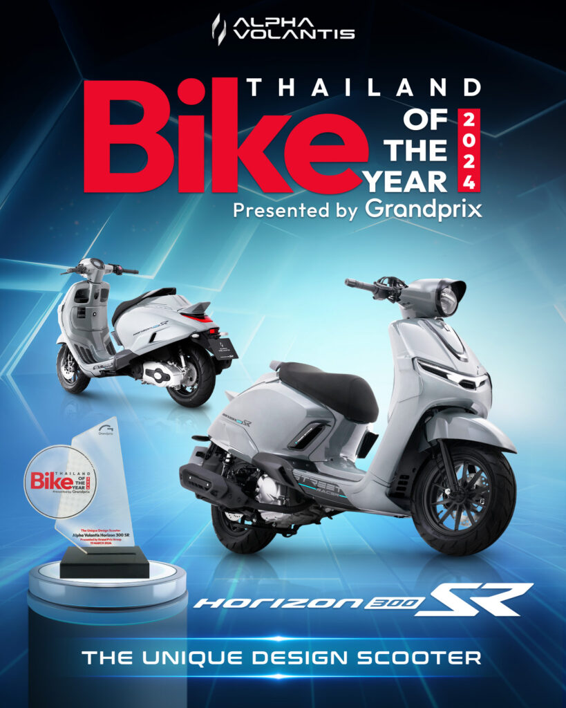 HORIZON 300SR ‘Street Racer’ รถจักรยานยนต์ที่ได้รับรางวัลในประเภท The Unique Design Scooter  จากการเฟ้นหารถจักรยานยนต์ยอดเยี่ยมแห่งปี Thailand Bike of The Year 2024 ถือเป็นการตอกย้ำความเป็นรถจักรยานยนต์ Sport Premium Scooter ที่มีดีไซน์สวยงามไม่ซ้ำใคร  มาพร้อมกับลุคหล่อ เท่ ดุดัน ด้วยสีใหม่ Assault Gray พิเศษด้วยชุดแต่ง SR Custom Parts แท้จากโรงงานถึง 13 ชิ้น รอบคัน ออกแบบอย่างทันสมัย สวยงามอย่างลงตัว พร้อมที่จะตอบสนองทุกการขับขี่ให้สนุกเร้าใจ และระบบช่วงล่างที่ถูกปรับเซ็ตใหม่ทั้งหมดให้สมรรถนะที่ดียิ่งขึ้น