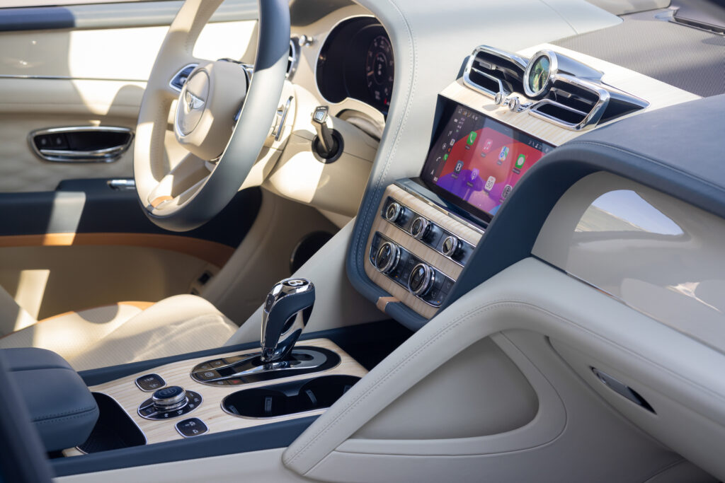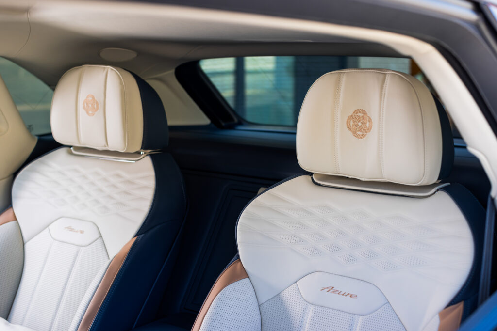ภายในห้องโดยสารของ Bentayga EWB Azure Riviera Collection นำเสนอการตกแต่งที่รังสรรค์ขึ้นเป็นพิเศษด้วยโทนสีภายในที่มีความซับซ้อนอย่างเฉดสีคราม Brunel เฉดสีขาว Linen และการเน้นเฉดสีที่ให้ความรู้สึกสบายและอบอุ่นในแบบที่เรียกว่า Autumn พร้อมด้วยวีเนียร์แบบ Pale Pinstripe ใหม่ซึ่งได้รับแรงบันดาลใจจากดาดฟ้าไม้สักสีอ่อนของเรือยอร์ชสุดหรูที่จะช่วยเพิ่มความสวยงามและความร่วมสมัยให้กับภายในห้องโดยสาร นอกจากนี้ Riviera Collection ยังมาพร้อมกับการปักโลโก้พิเศษ Riviera บนพนักพิงศีรษะและการปักโลโก้ ‘Azure’ บนพนักพิงเบาะโดยสารในโทนสี Autumn เพื่อสื่อถึงความใส่ใจในรายละเอียดและความพิเศษในแบบเฉพาะตัวของอัครยนตรกรรมรุ่นนี้
