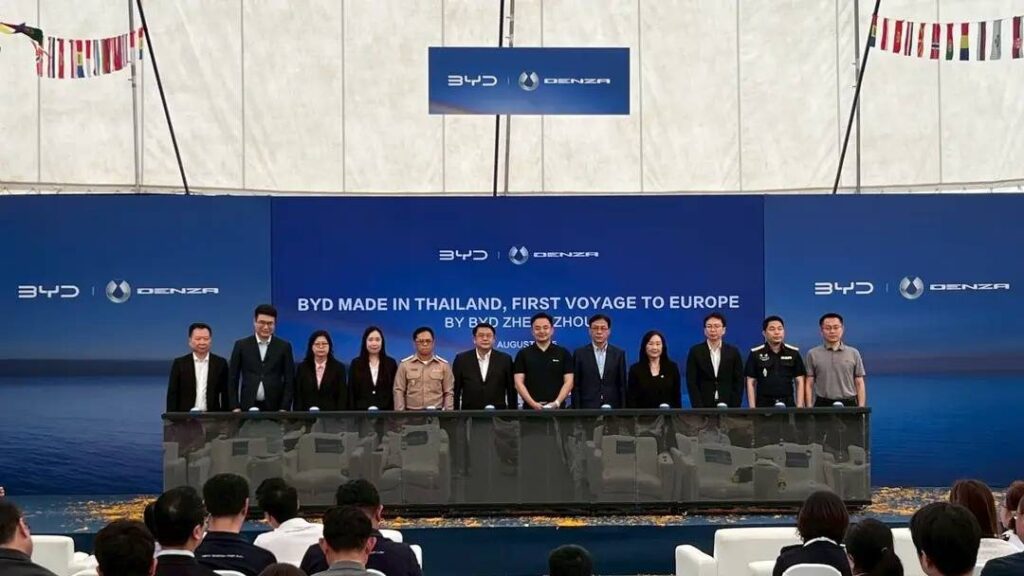 บริษัท บีวายดี ออโต้ (ประเทศไทย) จำกัด พร้อมด้วย บริษัท เรเว่ออโตโมทีฟ จำกัด ผู้จัดจําหน่ายและให้บริการหลังการขายรถยนต์พลังงานใหม่ BYD และ DENZAอย่างเป็นทางการในประเทศไทย ภายใต้กลุ่มธุรกิจเรเว่ ร่วมจัดพิธีแถลงความสำเร็จอีกขั้นของโรงงานบีวายดี ประเทศไทย ที่ผลิตรถยนต์รุ่น BYD DOLPHIN เพื่อส่งออกไปยัง 4 ประเทศทางยุโรป เป็นครั้งแรกกว่า 900 คัน ทั้งยังเป็นครั้งแรกที่เรือขนส่งรถยนต์ บีวายดี เจิ้งโจวจะออกเดินทางจากประเทศไทยสู่ยุโรป เพื่อลำเลียงรถยนต์พลังงานใหม่ที่มีคุณภาพ และผลิตด้วยฝีมือคนไทยไปส่งมอบให้ผู้บริโภคชาวตะวันตก ณ ท่าเรือแหลมฉบัง จังหวัดชลบุรี