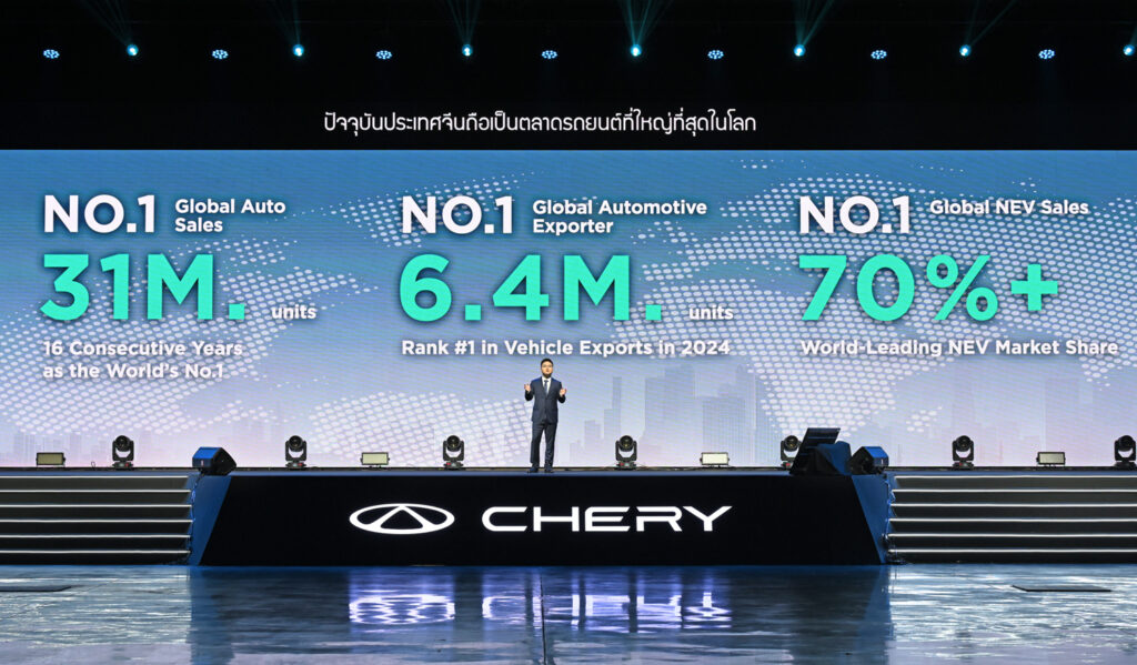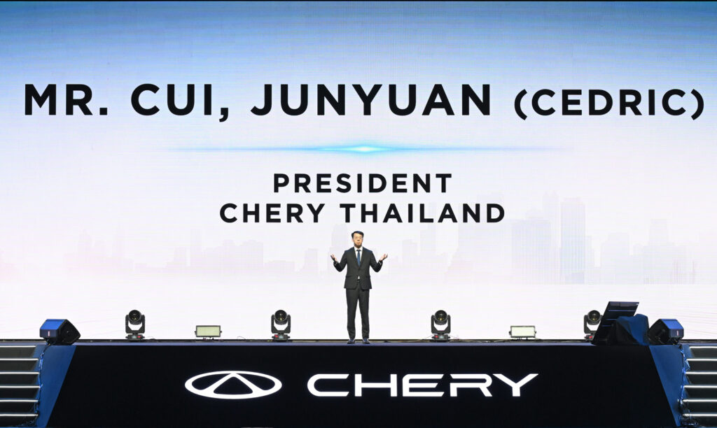 มร. ชุย จวิ้นหยวน ประธาน เชอรี (ประเทศไทย) กล่าวถึงวิสัยทัศน์และความสำคัญของตลาดประเทศไทยว่า “ประเทศไทยคือหัวใจสำคัญของภูมิภาคอาเซียน สำหรับ CHERY การเปิดตัวในวันนี้ไม่ใช่เพียงการนำรถยนต์เข้ามาจำหน่าย แต่คือการแสดงความมุ่งมั่นและคำมั่นสัญญาของเราที่จะนำเทคโนโลยีระดับโลกที่ได้รับการพิสูจน์แล้วมาสู่ผู้บริโภคชาวไทย เราเชื่อมั่นในศักยภาพของตลาดและพร้อมที่จะเติบโตเคียงข้างไปกับสังคมไทยอย่างยั่งยืน”