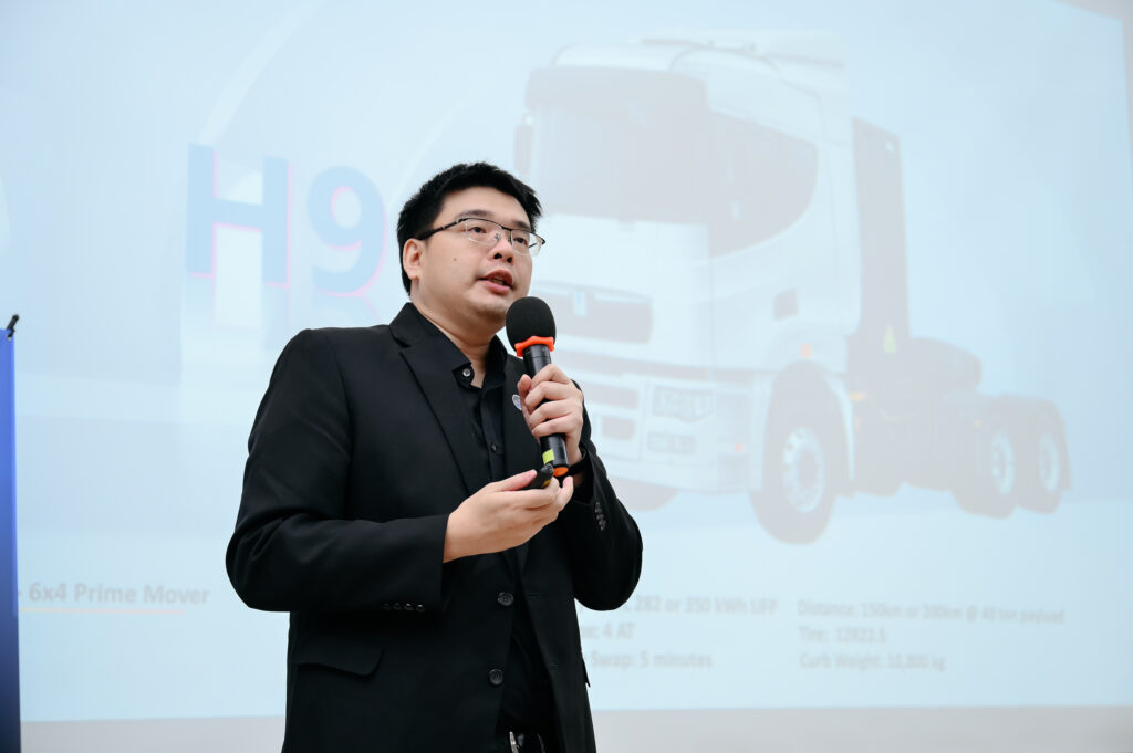 คุณ Sylvester Lee ซึ่งเป็น Co-founder และ Chief Technology Officer บริษัท เอลเอเนอร์จี้ จำกัด กล่าวถึง Farizon H9 Electric Prime Mover ว่าถูกพัฒนาขึ้นภายใต้มาตรฐานการผลิตระดับโลกของ Geely Holding Group มาพร้อมระบบขับเคลื่อนไฟฟ้าประสิทธิภาพสูง รองรับการบรรทุกน้ำหนักได้มากถึง 80 ตัน ด้วยแบตเตอรี่ลิเธียมฟอสเฟตจาก CATL โดยความจุสูงที่ให้ระยะทางวิ่งต่อการชาร์จสูงสุดถึง 350 กิโลเมตร ติดตั้งระบบความปลอดภัยอัจฉริยะครบครัน ทั้งระบบเบรก ABS, EBS และระบบช่วยขับขี่ขั้นสูง ภายในห้องโดยสารออกแบบตามหลักการยศาสตร์ พร้อมหน้าจอดิจิทัลขนาดใหญ่และระบบปรับอากาศอัตโนมัติ นอกจากนี้ยังมีระบบบริหารจัดการพลังงานอัจฉริยะที่ช่วยเพิ่มประสิทธิภาพการใช้พลังงานสูงสุด