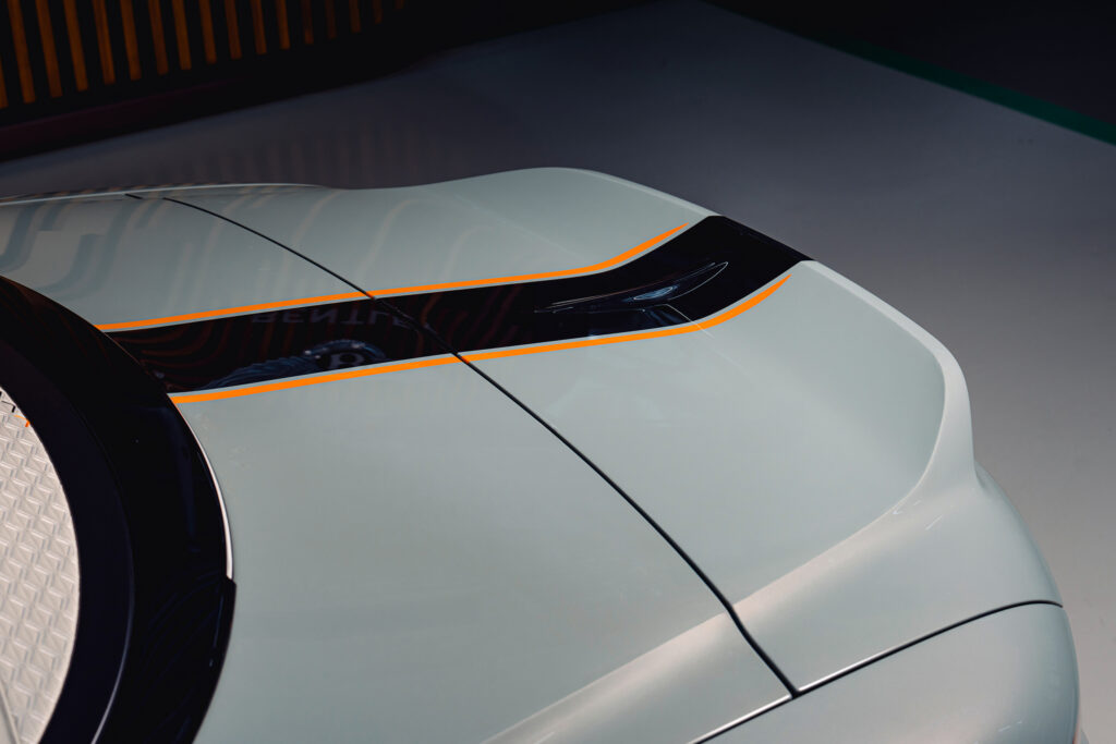 การออกแบบของ Batur Convertible รุ่นแรกได้สะท้อนถึงสมรรถนะอันเหนือชั้นของระบบส่งกำลัง รุ่น W12 เจ้าของขุมพลังกว่า 740 แรงม้า พร้อมด้วยเฉดสีเทา-เงิน Opalite ที่แวววาวอยู่บนตัวถังตัดกับแถบแข่งในเฉดสีดำเงาที่ผนวกเข้ากับการตกแต่งด้วยแถบเฉดสีส้ม Mandarin ทั้งสองฝั่ง แถบแข่งมาพร้อมกับการลงสีพิเศษแบบฝังแน่นเข้ากับตัวถังของรถอย่างแนบเนียนจากฝากระโปรงหน้าตลอดแนวไปยังฝากระโปรงหลังต่อเนื่องไปยังส่วนท้ายบริเวณตราสัญลักษณ์ของเบนท์ลีย์ องค์ประกอบเหล่านี้เชื่อมโยงกันด้วยงานปักที่ออกแบบเฉพาะในรูปแบบเดียวกันบริเวณหลังเบาะโดยสาร และกระจังหน้าแบบเมทริกซ์อันโดดเด่นที่ตกแต่งด้วยเฉดสีดำ Beluga แบบเงา พร้อมด้วยไฮไลท์เฉดสีส้ม Mandarin พร้อมกับล้ออัลลอยด์แบบ 5 ก้านที่ได้รับการรังสรรค์ด้วยเฉดสีที่คอนเทราสต์เช่นเดียวกัน