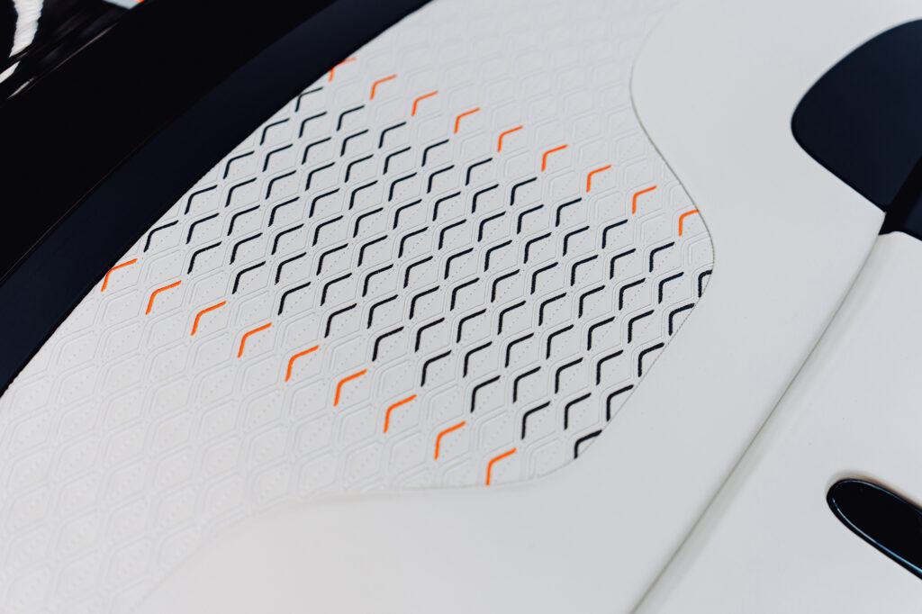 เบาะโดยสารแบบสปอร์ตได้รับการรังสรรค์ด้วยเฉดสีที่ตัดกันอย่างโดดเด่นโดยผนวกเข้ากับหนังเฉดสี Linen และ Alcantara พร้อมด้วยการตกแต่งด้วยเฉดสีส้ม Mandarin ลวดลายแบบ Batur และแผงประตูห้องโดยสารในเฉดสีขาว Linen ที่มีการตกแต่งด้วยการเดินด้ายในเฉดสีส้ม Mandarin แบบตัดกัน