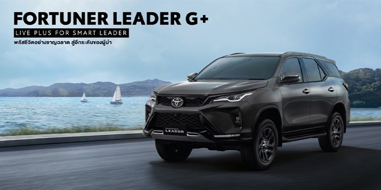 เพื่อตอบโจทย์การใช้งานของลูกค้า พร้อมกับตอกย้ำความเป็นผู้นำตลาดให้แข็งแกร่งยิ่งขึ้น โตโยต้าเติมเต็มไลน์อัพกับอีกหนึ่งตัวเลือกสำหรับผู้ที่มองหารถยนต์อเนกประสงค์ที่มีความหรูหราและความคุ้มค่า โดยภูมิใจแนะนำรถยนต์อเนกประสงค์ใหม่ล่าสุด Fortuner Leader G Plus ที่โดดเด่นด้วย ดีไซน์ภายนอก ที่รองรับทุกบทบาทของผู้นำ ความสะดวกสบายรอบด้าน สมรรถนะที่ทรงพลัง และระบบความปลอดภัยที่ครบครัน