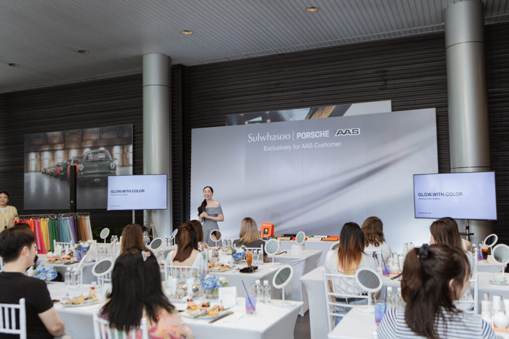 กิจกรรมสุดพิเศษนี้เริ่มต้นด้วย Workshop ที่พาทุกท่านไปสนุกสนานกับการค้นพบตัวตนที่แท้จริงของตัวเองผ่านสีสัน หรือ Personal Color โดยมี คุณเซ็ป Beauty Expert จาก Glow.With.Zepp ที่มีดีกรีจาก Certificated Makeup Artist & Personal Skincare Consultant จาก London ประเทศอังกฤษ และ Certificated Personal Color & Color Curator, Tokyo & Seoul ซึ่งคุณเซ็ปได้ทำการสอนให้แขกทุกท่านรู้จักการค้นหาตัวตนจากสีจะที่ทำให้คุณรู้สึกมั่นใจมากขึ้น จากการแยกสี Cool Tone และ Warm Tone ด้วยสีลิปสติกจากแบรนด์ Sulwhasoo จากนั้นแนะนำสีคุชชั่น (Cushion) และสีลิปสติกที่เหมาะสม รวมถึงสีรถยนต์ปอร์เช่ตามคอนเซ็ปของ Personal Color และสีภายในรถที่เข้ากับ Undertone ของแต่ละท่าน