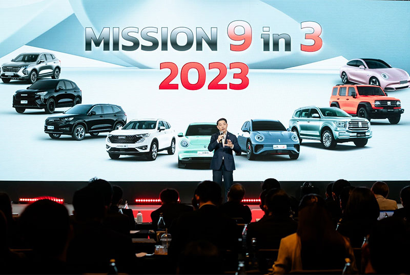 เกรท วอลล์ มอเตอร์ จัดงาน GWM Partner Meeting ประจำปี 2566 ภายใต้ธีม “GO BEYOND LIMITS” เพื่อประกาศความสำเร็จอีกขั้นของ Mission 9 in 3 หรือการเปิดตัวรถยนต์ทั้งหมด 9 รุ่นภายใน 3 ปี ตอกย้ำการก้าวขึ้นเป็นผู้นำด้านยานยนต์ไฟฟ้า (xEV Leader) ในประเทศไทย พร้อมเผยกลยุทธ์การเตรียมความพร้อมให้บรรลุยอดขายภายในปีนี้และปีหน้า พร้อมแสดงความขอบคุณต่อพาร์ทเนอร์ที่ให้การสนับสนุนและความไว้วางใจในการร่วมมือกันเพื่อเสริมสร้างความแข็งแกร่งให้กับการดำเนินธุรกิจและการขยายระบบนิเวศยานยนต์ไฟฟ้าในประเทศไทย ที่จะช่วยยกระดับอุตสาหกรรมยานยนต์ไทยให้ทัดเทียมระดับนานาชาติได้อย่างเป็นรูปธรรม