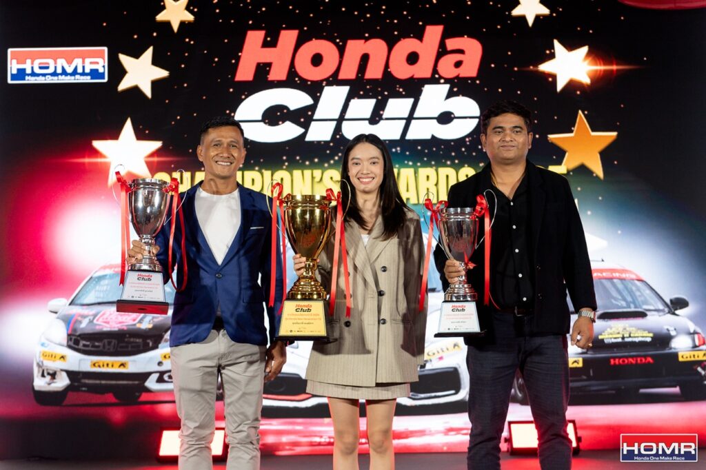 “กรังด์ปรีซ์ มอเตอร์สปอร์ต” โดย บริษัท กรังด์ปรีซ์ อินเตอร์เนชั่นแนล จำกัด (มหาชน) จับมือ “ฮอนด้า” มอบแชมป์ประจำปี “ฮอนด้า วันเมคเรซ 2025” อย่างทรงเกียรติภายในงาน “ฮอนด้า ซิตี้ แฮทช์แบ็ก วันเมคเรซ แชมเปี้ยนส์ อวอร์ดส์ 2025” โดย “กอล์ฟ” ประพจน์ ชื่นวิจิตร จาก Nexzter rest club ผงาดครองแชมป์ประจำปีโอเวอร์ออลล์ ฮอนด้า วันเมคเรซ ขณะที่แชมป์ในรุ่นเกียร์อัตโนมัติโอเวอร์ออลล์ ได้แก่ “ยศ” ทัศไนย พัฒนกุล จาก Armstrong Racing Team ด้าน หทัย ไชยวรรณ, “ข้าวฟ่าง” ปิยะวดี พฤฒิสาร และ “แบทแมน” สิรภพ สุวรรณเดช ครองแชมป์ ฮอนด้า คลับ ขณะที่ “บิ๊กเอก” อโณทัย เอี่ยมลำเนา ประธานจัดการแข่งขันประกาศเป็นทางการยกระดับความมันส์ฤดูกาลหน้า เอาใจคอความเร็วชาวไทย ในงานมอบแชมป์ประจำปี “ฮอนด้า วันเมคเรซ แชมเปี้ยนส์ อวอร์ดส์ 2025” (HONDA CITY HATCHBACK ONE MAKE RACE CHAMPION’S AWARDS 2025) จัดขึ้นเมื่อช่วงค่ำวันอังคารที่ 16 ธันวาคมที่ผ่านมา ภายใต้บรรยากาศสุดเป็นกันเองของบุคคลสำคัญในวงการมอเตอร์สปอร์ตไทยที่ อิมแพ็ค เมืองทองธานี