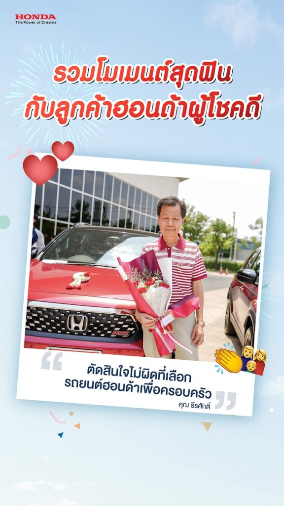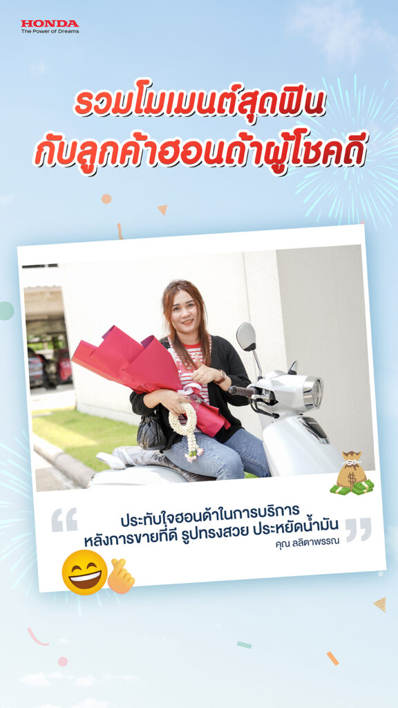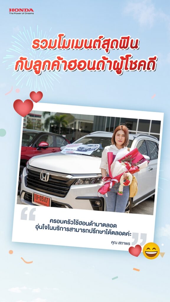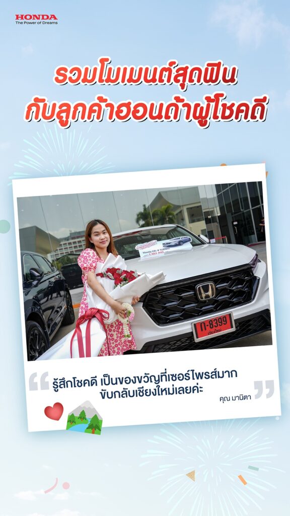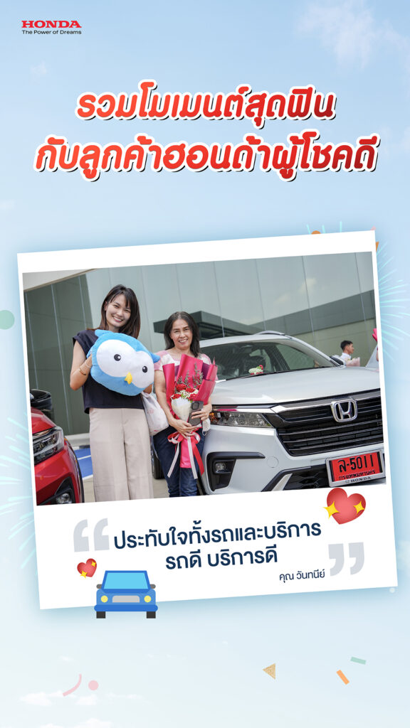 ทั้งนี้ ลูกค้าฮอนด้าผู้โชคดี ยังได้ร่วมแชร์ประสบการณ์ และความประทับใจที่มีต่อแบรนด์ฮอนด้า อาทิ