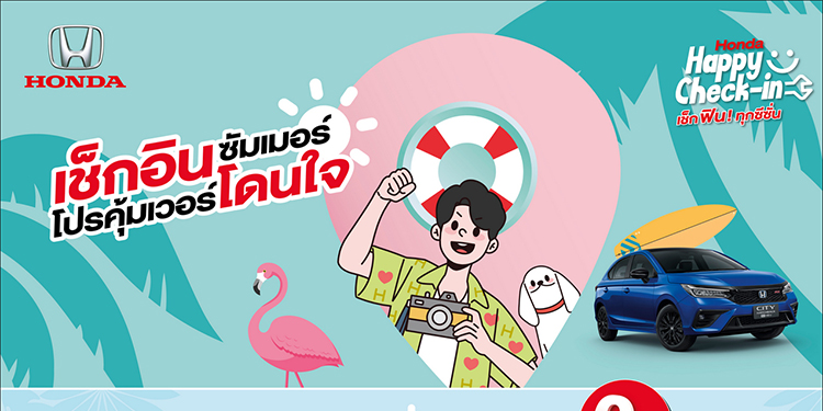 บริษัท ฮอนด้า ออโตโมบิล (ประเทศไทย) จำกัด ร่วมกับกรมการขนส่งทางบก จัดแคมเปญ “เช็กอินซัมเมอร์ โปรคุ้มเว่อร์โดนใจ” เชิญชวนลูกค้าฮอนด้าเตรียมความพร้อมทุกการเดินทางช่วงฤดูร้อนและเทศกาลสงกรานต์ ด้วยบริการตรวจสภาพรถยนต์ฟรี 25 รายการ พร้อมข้อเสนอสุดพิเศษ อาทิ ส่วนลด 10% ผลิตภัณฑ์บำรุงรักษาเครื่องยนต์และผลิตภัณฑ์ทำความสะอาดระบบฉีดจ่ายน้ำมันเชื้อเพลิง พร้อมด้วยแคมเปญยางรถยนต์หลากหลายยี่ห้อ อาทิ ซื้อ 3 แถม 1 หรือซื้อครบ 4 เส้น รับส่วนลดพิเศษ บัตรเติมน้ำมันหรือบัตรโลตัส รวมถึงมอบสิทธิประโยชน์พิเศษต่าง ๆ ซึ่งครอบคลุมทั้งลูกค้าใหม่และลูกค้าเก่า โดยมีระยะแคมเปญตั้งแต่วันที่ 1 มีนาคม 2567 – 30 เมษายน 2567