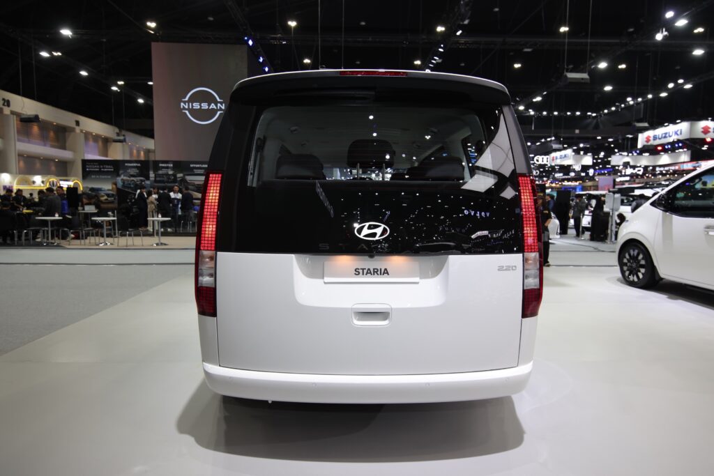 STARIA มอบความสะดวกตั้งแต่พื้นฐานอย่าง ประตูสไลด์ไฟฟ้าคู่ Smart Power Sliding Door, บันไดข้างไฟฟ้า ขึ้น-ลงง่าย, ประตูท้ายไฟฟ้า Smart Tailgate, ช่องชาร์จรอบคัน และระบบปรับอากาศสามแถว ไปจนถึงระบบความปลอดภัย Hyundai SmartSense พร้อมกล้องรอบคัน 360° ช่วยให้ใช้งานในเมืองหรือเข้าจอดในพื้นที่แคบได้แบบไม่เครียด