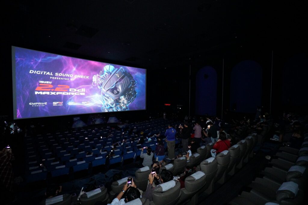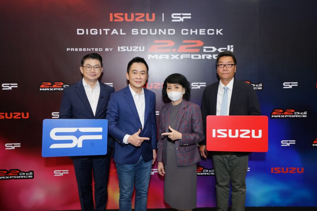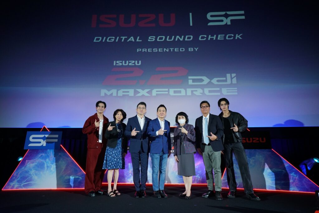 คุณสุวิทย์ ทองร่มโพธิ์ ประธานเจ้าหน้าที่บริหารสายงานการตลาด บริษัท เอส เอฟ คอร์ปอเรชั่น จำกัด (มหาชน) กล่าวว่า “เอส เอฟ ในฐานะผู้นำในธุรกิจโรงภาพยนตร์ชั้นนำของไทย มีความยินดีเป็นอย่างยิ่งที่ได้ทำหน้าที่เป็นช่องทางสร้างการรับรู้เกี่ยวกับนวัตกรรมเครื่องยนต์ ใหม่! ISUZU 2.2 Ddi MAXFORCE พลังใหม่…กำหนดโลก ไปสู่กลุ่มลูกค้าที่มีความหลากหลายด้านไลฟ์สไตล์ โดยมั่นใจว่าภาพยนตร์โฆษณา Digital Sound Check ชุดใหม่ล่าสุดของอีซูซุ ที่มีการเติมเต็มอรรถรส ด้วยระบบภาพบนจอยักษ์ที่มีความละเอียดสูง ระบบเสียง Dolby Atmos ซึ่งเป็นระบบเสียงที่ดีที่สุดในปัจจุบัน และสามารถรับชมได้ในโรงภาพยนตร์เครือเอส เอฟ ที่มีมากถึง 392 สาขาทั่วประเทศนั้นจะแสดงถึงจุดเด่นของขุมพลังใหม่ที่เป็นเทคโนโลยีดีเซลแห่งอนาคตที่มาพร้อมสมรรถนะอันยอดเยี่ยม แรงขึ้น เร็วขึ้น และประหยัดน้ำมันมากขึ้นตามแบบฉบับของอีซูซุได้อย่างเด่นชัดอีกด้วย”