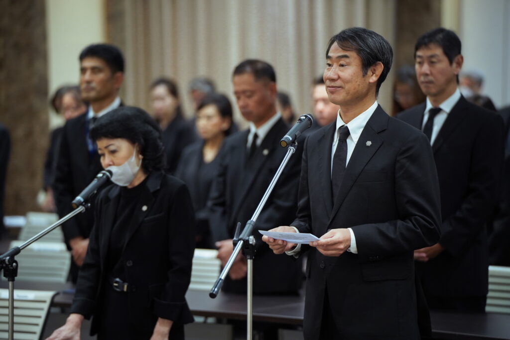 ในพิธีถวายอาลัยซึ่งจัดขึ้นที่ห้องประชุมชั้น 20 ของอาคารสำนักงานใหญ่นั้น  มร. ทาคาชิ ฮาตะ กรรมการผู้จัดการ บริษัท ตรีเพชรอีซูซุเซลส์ จำกัด เป็นผู้กล่าวนำ โดยมี  คณะผู้บริหารของบริษัทในกลุ่มตรีเพชรร่วมยืนสงบนิ่งเป็นเวลา 3 นาที หลังจากนั้นได้ร่วมกันร้องเพลงสรรเสริญพระบารมี และก้มศีรษะกราบสงบนิ่งเป็นเวลา 30 วินาที เพื่อถวายบังคมและน้อมสำนึกในพระมหากรุณาธิคุณอันหาที่สุดมิได้ของสมเด็จพระนางเจ้าสิริกิติ์ พระบรมราชินีนาถ พระบรมราชชนีพันปีหลวง ที่ทรงมีต่อทั้งปวงชนชาวไทยและประเทศไทยตลอดพระชนม์ชีพของพระองค์ท่าน