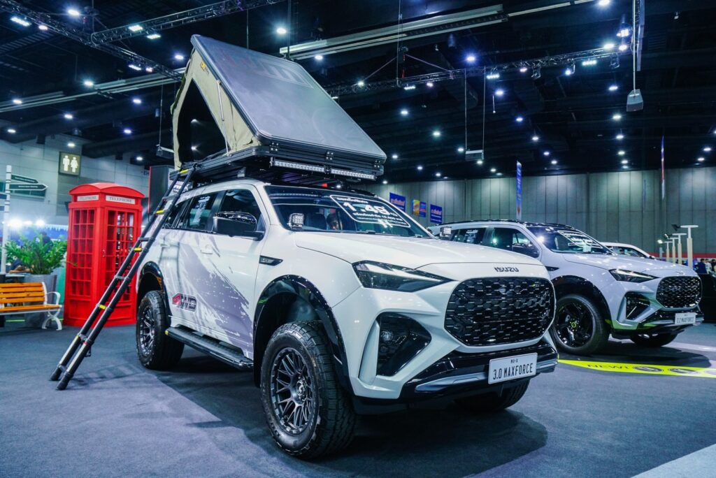 • NEW! ISUZU MU-X “THE NEXT PEAK” รุ่น RS 4×4 สีขาวมุกโดโลไมท์ (Dolomite White Pearl) เครื่องยนต์ 3.0 Ddi MAXFORCE เกียร์อัตโนมัติ ตกแต่งสำหรับสายท่องเที่ยวแคมป์ปิ้ง สไตล์ Overland เริ่มจากบันไดข้างจาก TJM พร้อมชุดกันกระแทกด้านข้างตัวถัง เต๊นท์บนหลังคาจาก TJM รุ่น ALLORA ALUMINIUM ROOF TOP TENT เพิ่มความสว่างในยามค่ำคืนด้วยชุดไฟ TJM รุ่น SEEKER LIGHT BAR และชุดไฟ SEEKER SIDE SHOOTER บริเวณฝากระโปรงหน้า ลุยได้มากยิ่งขึ้นด้วยชุดช่วงล่างจาก TJM โช้คอัพรุ่น XGS ROAMER จับคู่กับคอยล์สปริงรุ่น XGS พร้อมปีกนกปรับองศา ล้อ Lenso รุ่น MX รุ่น Cezar พร้อมยาง BRIDGESTONE DUELER AT002 ขนาด 285/60R18