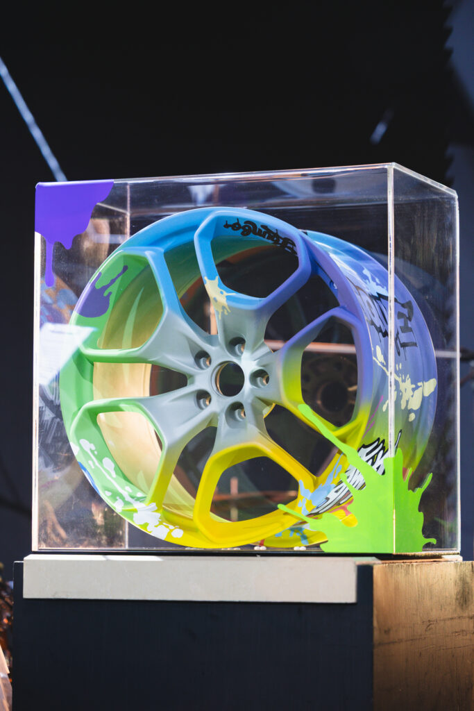 โดยไฮไลต์ของงานคือ การเปิดประมูลผลงานศิลปะที่มีเพียงชิ้นเดียวในโลกอย่าง ล้อรถลวดลายกราฟฟิตี้ ซึ่งที่ได้รับเกียรติจาก BIGDEL ศิลปินผู้คร่ำหวอดในวงการกราฟฟิตี้และสตรีทอาร์ตมาร่วมครีเอท โดยสมาชิกที่ได้ผลงานสุดพิเศษนี้ไปครอบครอง คือ