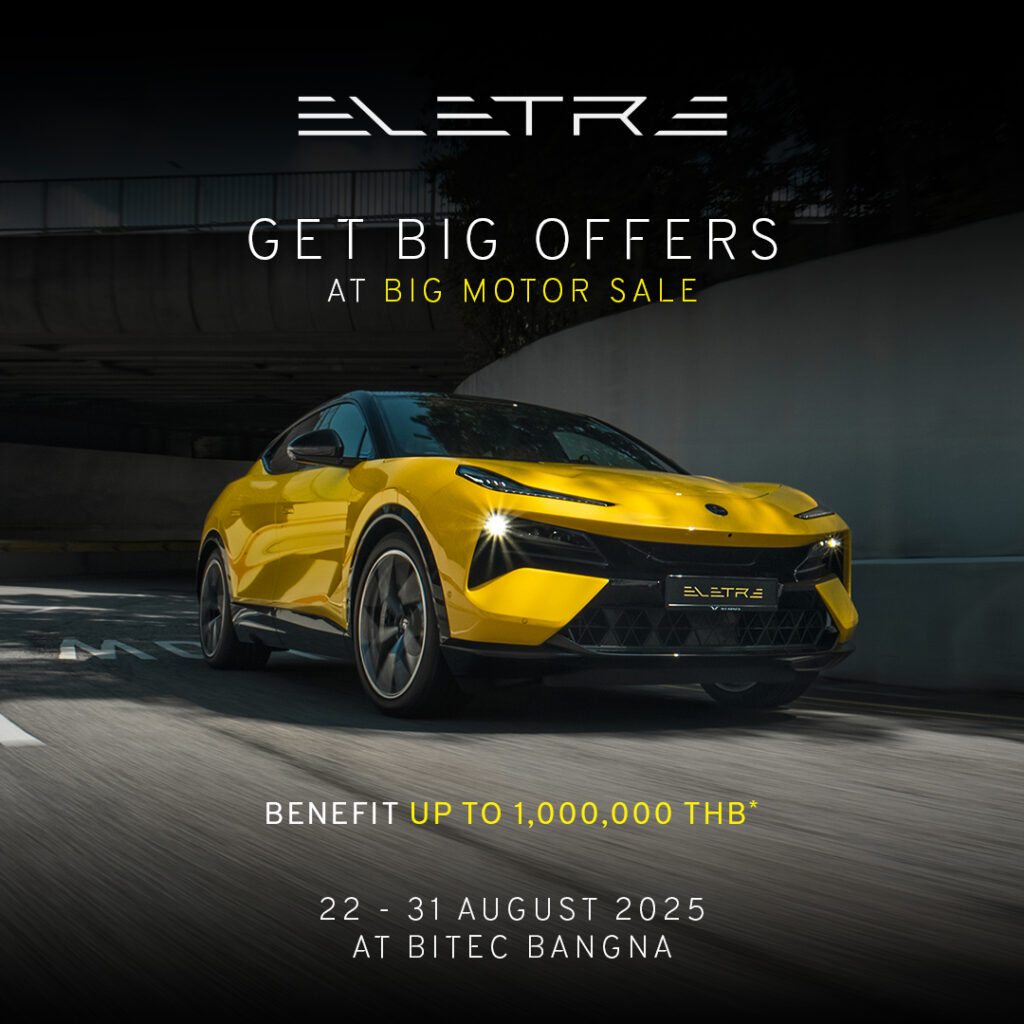 โลตัส คาร์ ประเทศไทย ผู้นำเข้ารถยนต์โลตัสอย่างเป็นทางการแต่เพียงผู้เดียวในประเทศไทย เข้าร่วมงาน “Bangkok International Grand Motor Sale 2025” หรือ “Big Motor Sale 2025” รุกตลาดใหม่เปิดโอกาสให้ผู้ที่สนใจรถยนต์แบรนด์ LOTUS ได้สัมผัสประสบการณ์ความล้ำสมัยของยานยนต์ไฟฟ้าสมรรถนะสูง ยกทัพมาครบทุกรุ่น พร้อมส่งมอบ และพร้อมเปิดจองล่วงหน้าสำหรับรถโมเดลเยียร์ใหม่ (Model Year 26) ให้เป็นเจ้าของรถยนต์ล็อตแรกได้แล้ววันนี้ ด้วยข้อเสนอสุดเอ็กซ์คลูซีฟให้คุณได้ครอบครองในงาน ตั้งแต่วันที่ 22 – 31 สิงหาคม 2568 ที่บูธรถยนต์ Lotus Cars Thailand (A21) ณ ศูนย์แสดงสินค้าและการประชุม ไบเทค บางนา