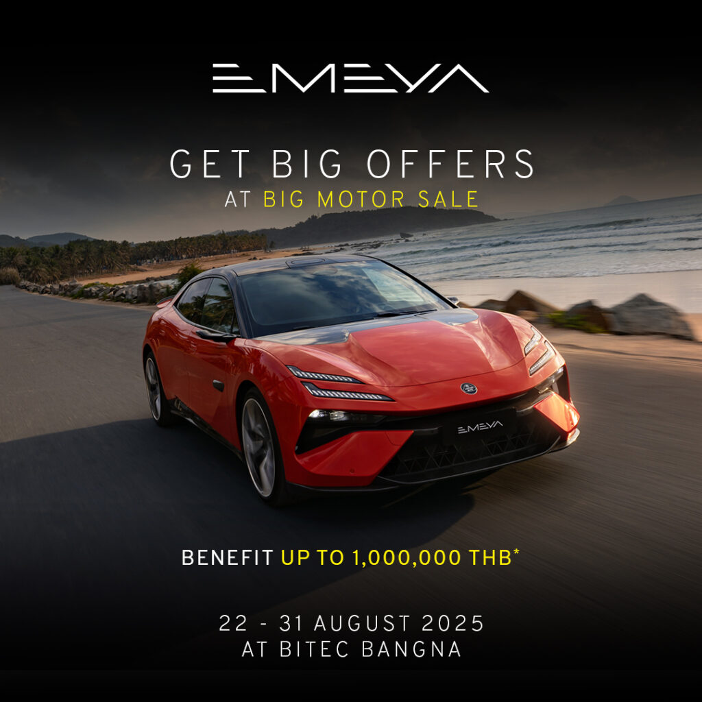 - รุ่นเริ่มต้น Emeya 600 (Hyper-GT) ในราคาเพียง 4.89 ล้านบาท พร้อมมอบสิทธิพิเศษที่ดีที่สุด รับประกันภัยชั้นหนึ่ง นานถึง 2 ปี* และรับ Lotus Wall Box พร้อมติดตั้ง*