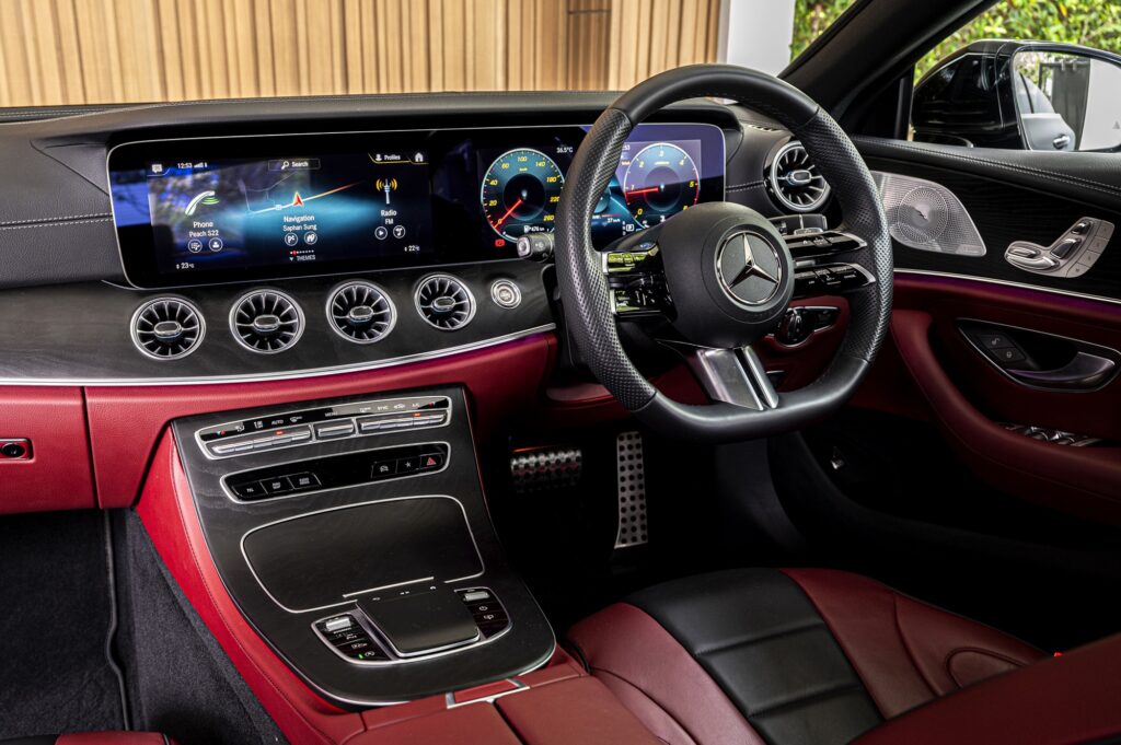 ภายในห้องโดยสารมาพร้อมออปชั่นพิเศษแบบจัดเต็ม อาทิ หน้าจอแสดงผล Widescreen Cockpit ขนาด 12.3 นิ้ว จำนวน 2 จอ เบาะนั่งหุ้มหนัง Nappa นุ่มสบายทั้งคนขับและตอนหลัง พวงมาลัยมัลติฟังก์ชันแบบสปอร์ต พร้อมระบบเปลี่ยนเกียร์ที่พวงมาลัย และระบบปรับโหมดการขับขี่แบบ DYNAMIC SELECT เป็นต้น มอบประสบการณ์การเชื่อมต่อที่เหนือชั้นระหว่างระบบกับผู้ขับขี่และผู้โดยสารด้วยระบบปฏิบัติการ MBUX และฟังก์ชั่น Music Streaming Service สามารถเชื่อมต่อสุนทรียภาพและชาร์จมือถือแบบไร้สายไปในตัว (Wireless Charging) เพิ่มความเร้าใจในทุกการฟังเพลงผ่านระบบเสียงรอบทิศทาง Burmester® พร้อมนำเสนออีกขั้นของความสะดวกสบายในทุกการขับขี่ด้วยระบบตัวช่วยการนำรถเข้าจอดอัตโนมัติ (Active Parking Assist with PARKTRONIC) ระบบช่วยเตือนเมื่อมีรถอยู่ในจุดอับสายตา (Blind Spot Assist) ระบบช่วยเตือนอาการเหนื่อยล้าขณะขับขี่ (ATTENTION ASSIST) และระบบช่วยเบรกฉุกเฉินแบบแอคทีฟ (ACTIVE BRAKE ASSIST) ที่จะคอยดูแลทุกความปลอดภัยอย่างเต็มพิกัด