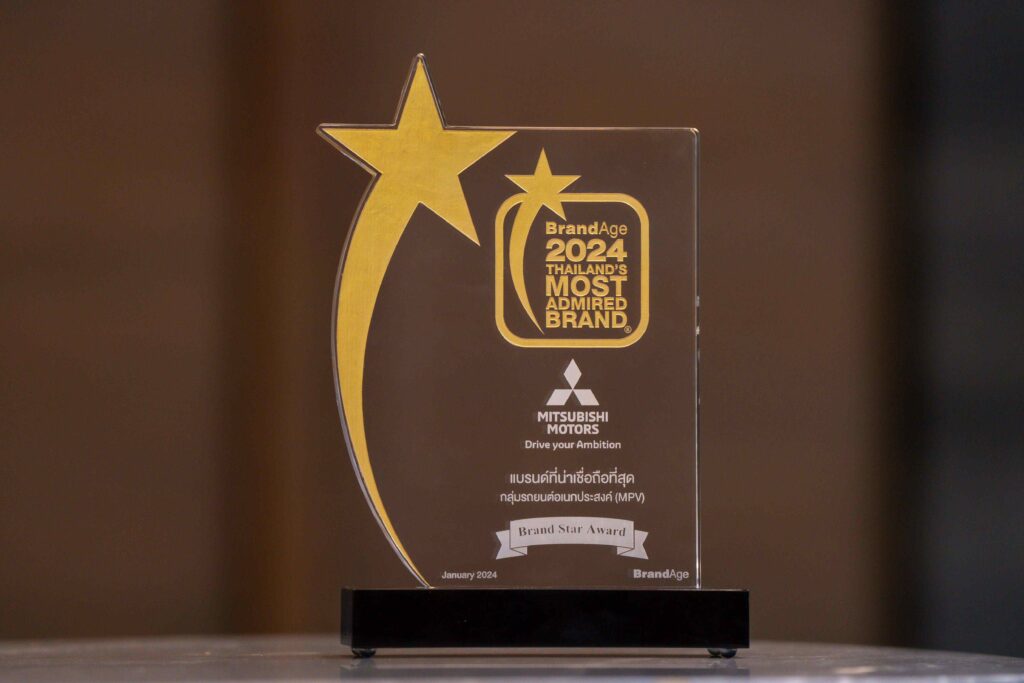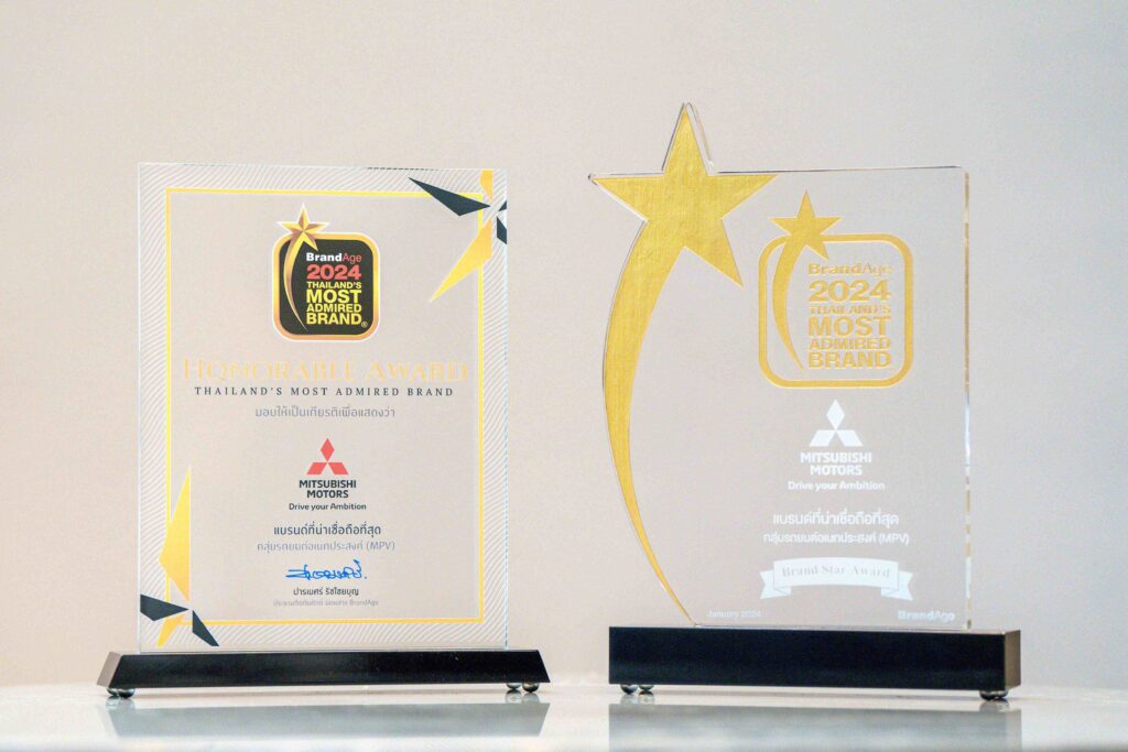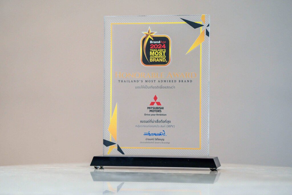 มิตซูบิชิ มอเตอร์ส คว้ารางวัลแบรนด์ที่มีความน่าเชื่อถือและไว้วางใจสูงสุดจากผู้บริโภคในหมวดยานยนต์ กลุ่มรถยนต์อเนกประสงค์ (MPV) พร้อมรับรางวัลพิเศษ Brand Star Award จากผลสำรวจ 2024 Thailand’s Most Admired Brand โดย BrandAge ซึ่งเป็นนิตยสารและสื่อออนไลน์ชั้นนำ ทางด้านการตลาดและธุรกิจ โดยรางวัลนี้สะท้อนถึงความสำเร็จและคุณภาพอันยอดเยี่ยมของ มิตซูบิชิ เอ็กซ์แพนเดอร์ และ มิตซูบิชิ เอ็กซ์แพนเดอร์ ครอส ซึ่งเป็นผู้นำตลาดเอ็มพีวี ในประเทศไทยมาอย่างต่อเนื่อง