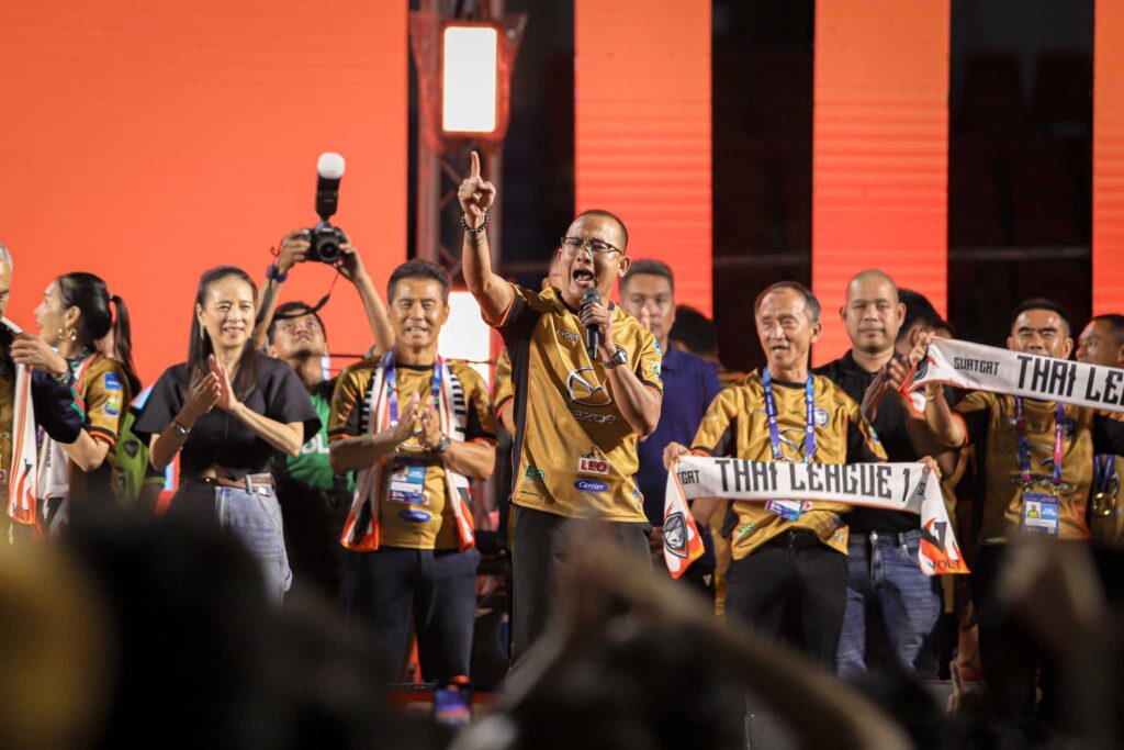 นายธีร์ เพิ่มพงศ์พันธ์ รองประธานบริหารอาวุโส บริษัท มาสด้า เซลส์ (ประเทศไทย) จำกัด แมตช์นี้นับเป็นนัดสำคัญยิ่งต่อการตัดสินแชมป์ประจำฤดูกาล มีแฟนบอลหลั่งไหลมาจากทั่วสารทิศเข้าชมการแข่งขันในแมตช์นี้มากสุดถึง 24,556 คน ซึ่งทีมสวาทแคทยังคงครองสถิติอันดับหนึ่งที่มีผู้เข้าชมเกมมากที่สุด วันนี้ทุกคนในทีมต่างร่วมแรงร่วมใจกันลุกขึ้นสู้อีกครั้ง ด้วยพลังศรัทธาและเชื่อมั่นในสปิริตความเป็นนักสู้ของทุกคนในทีม ซึ่งเป็น ดีเอ็นเอเฉกเช่นเดียวกับชาวมาสด้า เราไม่เคยยอมแพ้ต่ออุปสรรคและเชื่อมั่นในสปิริตความเป็นนักสู้ พร้อมฟันฝ่าอุปสรรคต่างๆ มากว่า 100 ปี และอยู่เคียงข้างคนไทยมาถึง 73 ปี และเราจะยังคงอยู่เคียงข้างสังคมไทยตลอดไป มาสด้าหวังเป็นอย่างยิ่งว่าจะมีส่วนช่วยขับเคลื่อนวงการฟุตบอลไทยไปสู่การพัฒนาที่ยั่งยืน ฟุตบอลเปรียบเสมือนสะพานเชื่อมความสัมพันธ์อันดีของผู้คน ไม่ใช่เฉพาะกับชาวโคราชเท่านั้น แต่รวมถึงคนไทยทั้งประเทศ