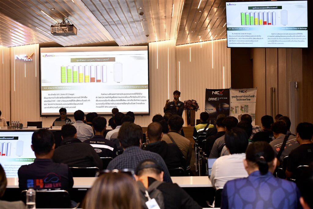 ณ ห้องแกรนด์บอลรูม บริษัท เน็กซ์ พอยท์ จำกัด (มหาชน) ผู้นำด้านยานยนต์ไฟฟ้าเชิงพาณิชย์ในประเทศไทย จัดอบรมพิเศษเรื่อง “การจัดการความปลอดภัยยานยนต์ไฟฟ้าเมื่อเกิดอุบัติเหตุ (EV Accident Response and Safety Protocols)” โดยวิทยากรที่มีประสบการณ์สูง ดร.วิชญ์พล โมทนียชาติ ผู้จัดการแผนกวิศวกรรมโครงการพิเศษ ฝ่ายพัฒนากลยุทธ์ และวางแผนการลงทุน บริษัท อมิตา เทคโนโลยี (ประเทศไทย) จำกัด เพื่อเตรียมความพร้อมด้านความปลอดภัยให้แก่ตัวแทนจำหน่าย และพันธมิตรของบริษัทฯ ทั่วประเทศ ตลอดจน ทีมให้บริการฉุกเฉิน (Roadside Assistance) และผู้ประกอบการศูนย์ซ่อมสีและตัวถังฯ