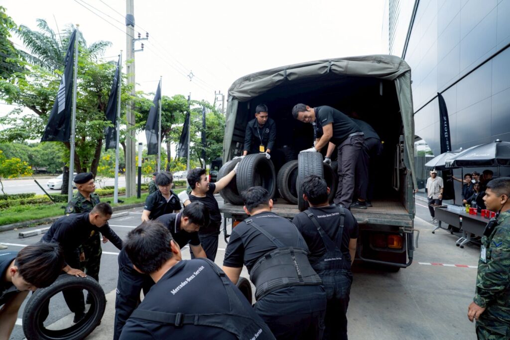 เมื่อเร็วๆ นี้ ณัฏฐวุฒิ ตั้งคารวคุณ (ที่ 5 จากซ้าย) ประธาน, จิระพล รุจิวิพัฒน์ (ที่ 4 จากขวา) กรรมการผู้จัดการ, ศราวิช ไชยมังกร (ที่ 4 จากซ้าย) รองกรรมการผู้จัดการ และคณะผู้บริหาร บริษัทในเครือ ไพรม์มัส กรุ๊ป ร่วมมอบยางรถยนต์ ที่ได้จากการรวบรวมยางรถยนต์ใช้แล้วของลูกค้าที่เข้าใช้บริการหลังการขายของศูนย์บริการรถยนต์ ไพรม์มัส กรุ๊ป ทั้ง 5 ยี่ห้อ ได้แก่ Mercedes-Benz, Zeekr, Deepal, MG และ Aion รวมจำนวนทั้งสิ้น 524 เส้น ให้แก่กองทัพบก เพื่อนำไปสนับสนุนการปฏิบัติงานในกิจการของกองทัพ โดยมี พล.ต.วีรธัช ศรีใส (ที่ 5 จากขวา) ผู้อำนวยการ สำนักส่งกำลังบำรุง กรมส่งกำลังบำรุงทหารบก ในนามผู้แทน เจ้ากรมส่งกำลังบำรุงทหารบก ในกองบัญชาการกองทัพบก พร้อม พ.อ.ธนิต อิ่มอกใจ (ที่ 6 จากขวา) เสนาธิการ ศูนย์การเคลื่อนย้ายกองทัพบก และ พ.อ.อัครนิธิ์ ณ เชียงใหม่ (ที่ 7 จากขวา) นายทหาร ฝ่ายยุทธการ กรมขนส่งทหารบก เป็นผู้รับมอบ พร้อมร่วมส่งกำลังใจให้แก่ทหารแนวหน้าทุกท่าน ที่ทำหน้าที่ปกป้องอธิปไตยของไทย ณ บริเวณโชว์รูมและศูนย์บริการรถยนต์ของ “ไพรม์มัส กรุ๊ป”