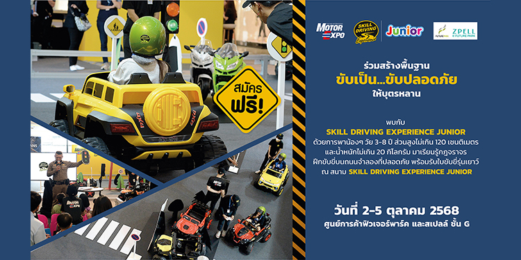ผู้ปกครองสามารถพาบุตรหลานของท่านที่มีอายุ 3-8 ปี ความสูงไม่เกิน 120 เซนติเมตร และน้ำหนักไม่เกิน 20 กิโลกรัม ไปเข้าร่วมกิจกรรมได้ฟรี ที่ลาน Zpotlight ฟิวเจอร์ พาร์ค และ สเปลล์ ชั้น G ระหว่างวันที่ 2-5 ตุลาคม 2568 และสามารถติดตามรายละเอียดเพิ่มเติมได้ที่ facebook.com/skilldriving