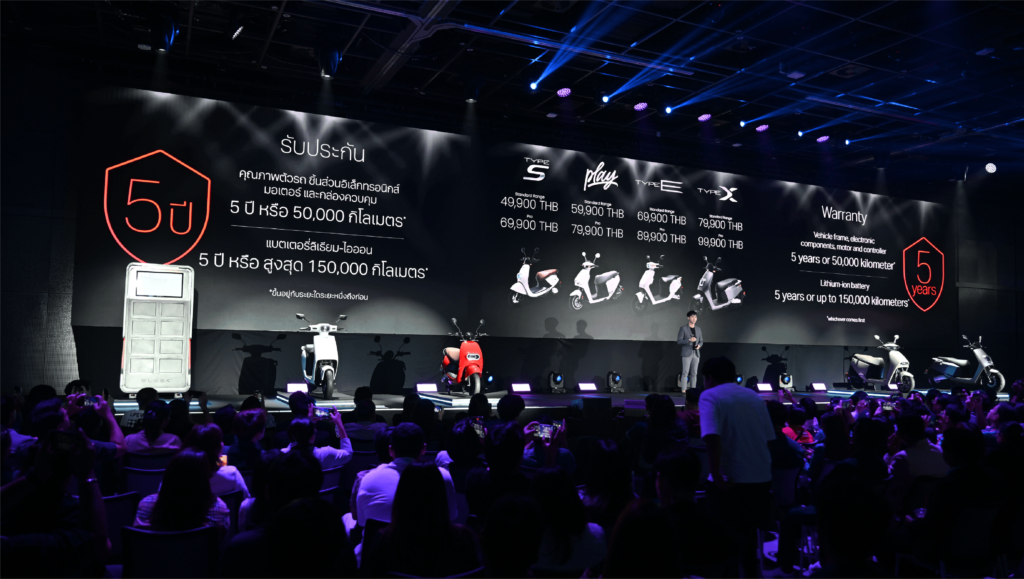 • Type-E ราคาเริ่มต้นที่ 69,900 บาท และ 89,900 บาท ความเร็วสูงสุด 90 กม./ชม. ระยะขับขี่ 75-150 กม.