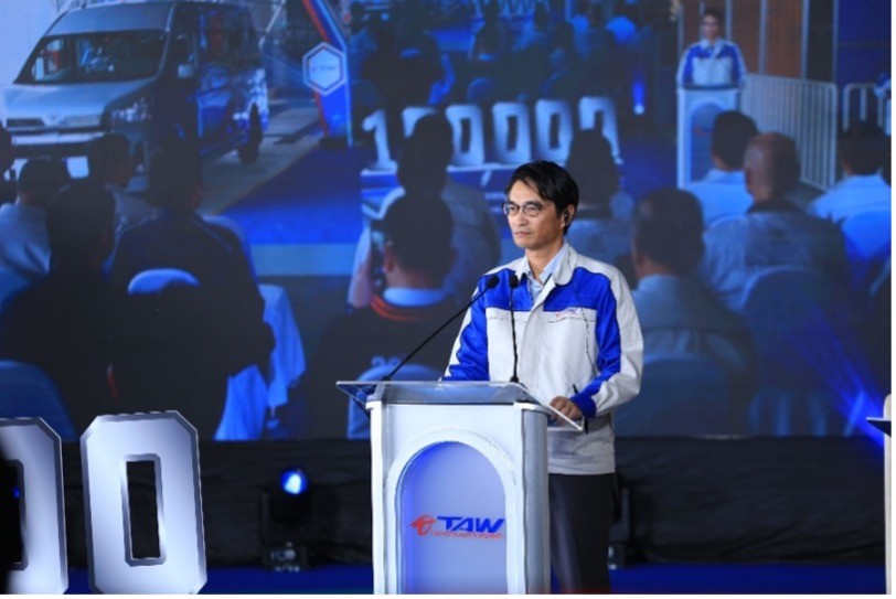 นายวิเชียร ฉันทศิริพันธุ์ รองกรรมการผู้จัดการใหญ่ บริษัท โตโยต้า ออโต้ เวิคส จำกัดกล่าวแสดงความขอบคุณกลุ่มบริษัทในเครือ ผู้แทนจำหน่าย และผู้ผลิตชิ้นส่วน ที่ให้การสนับสนุนมาโดยตลอดภายใต้สถานการณ์การผลิตที่มีความผันผวนว่า