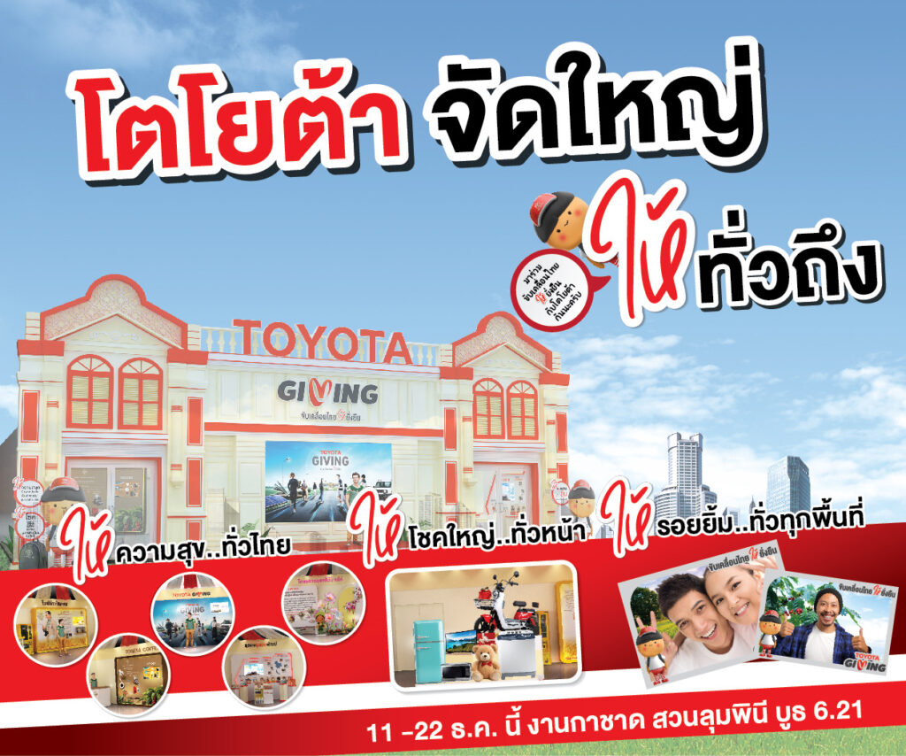 กิจกรรมดังกล่าวนี้ ดำเนินการภายใต้แนวคิด “TOYOTA GIVING ขับเคลื่อนไทยให้ยั่งยืน” ซึ่งถือเป็นหนึ่งในพันธกิจสำคัญของโตโยต้า ในการขับเคลื่อนชุมชนให้มีคุณภาพชีวิตที่ดีอย่างยั่งยืน ผ่านการให้ใน ทุกมิติ ซึ่งประกอบด้วย 5 โครงการ ดังนี้