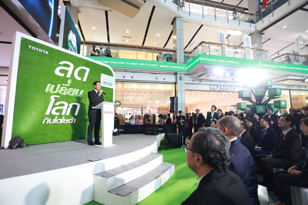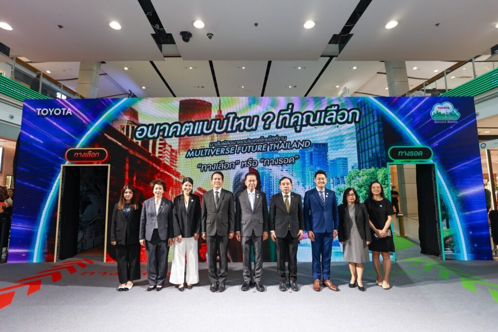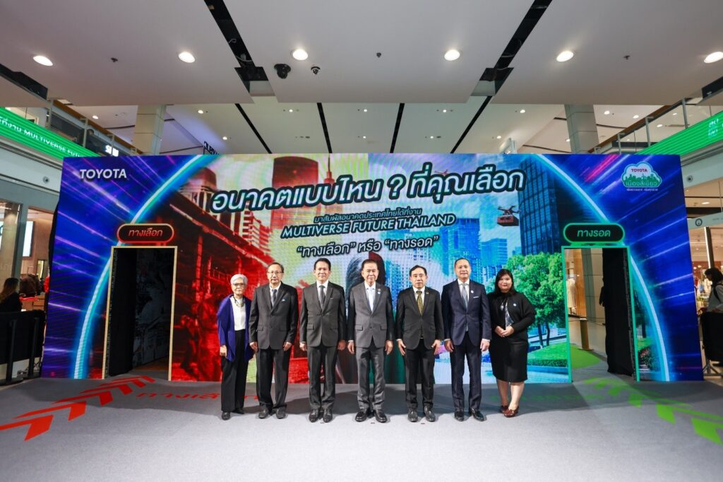นายนินนาท ไชยธีรภิญโญ ที่ปรึกษากิตติมศักดิ์ บริษัท โตโยต้า มอเตอร์ ประเทศไทย จำกัด และ นายสุรภูมิ อุดมวงศ์ รองกรรมการผู้จัดการใหญ่ บริษัท โตโยต้า มอเตอร์ ประเทศไทย จำกัด พร้อมด้วยตัวแทนจากหน่วยงานพันธมิตร ภาครัฐ และภาคเอกชน ร่วมเป็นเกียรติในงานนิทรรศการ “Multiverse Future Thailand ทางเลือก หรือ ทางรอด” เพื่อสร้างความตระหนัก ถึงผลกระทบจากสถานการณ์ภาวะโลกเดือด ควบคู่ไปกับการกระตุ้นให้เกิดการลงมือปรับพฤติกรรม เมื่อวันที่ 17 มกราคม 2568 ณ ลาน Eden ชั้น 1 ศูนย์การค้าเซ็นทรัลเวิลด์