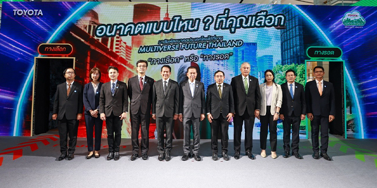 นายนินนาท ไชยธีรภิญโญ ที่ปรึกษากิตติมศักดิ์ บริษัท โตโยต้า มอเตอร์ ประเทศไทย จำกัด และ นายสุรภูมิ อุดมวงศ์ รองกรรมการผู้จัดการใหญ่ บริษัท โตโยต้า มอเตอร์ ประเทศไทย จำกัด พร้อมด้วยตัวแทนจากหน่วยงานพันธมิตร ภาครัฐ และภาคเอกชน ร่วมเป็นเกียรติในงานนิทรรศการ “Multiverse Future Thailand ทางเลือก หรือ ทางรอด” เพื่อสร้างความตระหนัก ถึงผลกระทบจากสถานการณ์ภาวะโลกเดือด ควบคู่ไปกับการกระตุ้นให้เกิดการลงมือปรับพฤติกรรม เมื่อวันที่ 17 มกราคม 2568 ณ ลาน Eden ชั้น 1 ศูนย์การค้าเซ็นทรัลเวิลด์