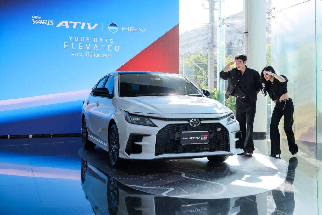 แอลลี่ อชิรญา นิติพน และ โฟร์ท ณัฐวรรธน์ จิโรชน์ธิกุล พรีเซนเตอร์ NEW YARIS ATIV HEV “YOUR DAYS,  ELEVATED…จังหวะที่ใช่ ในแบบเรา” เดินทางมารับรถที่ใช่ กับ NEW YARIS ATIV HEV รุ่น HEV GR SPORT พร้อมร่วมกิจกรรมทดลองขับ เพื่อทดสอบระบบความปลอดภัยแบบครบครัน กับ TOYOTA SAFETY SENSE โดยพรีเซนเตอร์ทั้งสองคนต่างเห็นตรงกันว่าเป็นรถที่ขับสนุกสุดๆ ทั้งนี้ทางโฟร์ทเลือกรถสีดำ ATTITUDE BLACK MICA และ แอลลี่เลือกรถสีแดง RED MICA METALLIC สะท้อนความเป็นตัวเอง โดนเด่น สปอร์ต เมื่อวันที่ 8 ธันวาคม 2568 ณ TOYOTA ALIVE