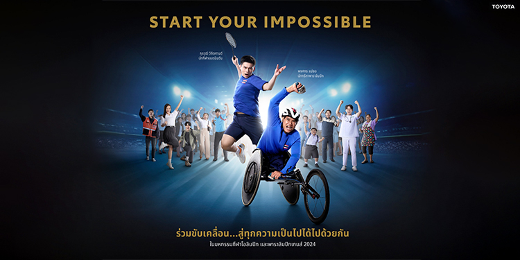 ในปีนี้ โตโยต้าได้สานต่อแนวคิด Start Your Impossible ผ่านการเน้นย้ำถึงจุดยืนที่ชัดเจนขึ้นกว่าเดิม ด้วยการเป็นผู้สนับสนุนหลักอย่างเป็นทางการของการแข่งขันกีฬาโอลิมปิกและพาราลิมปิก ณ กรุงปารีส 2024 บนพื้นฐานความเชื่อมั่นว่า การแข่งขันกีฬาเป็นหนึ่งในการแสดงออกถึงการผลักดันทางร่างกายและจิตใจเพื่อไปสู่เป้าหมายอย่างแท้จริง เสริมด้วยแนวคิด Community Creates Possibilities ที่คุณจะไปสู่เป้าหมายที่แท้จริงไม่ได้ หากขาดการสนับสนุนจากผู้คนรอบตัวที่ช่วยผลักดันไปสู่ความสำเร็จที่เป็นไปได้