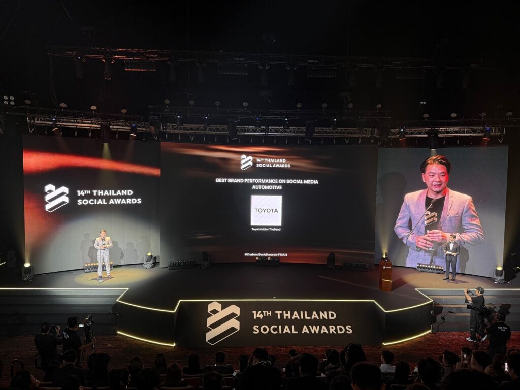 บริษัท โตโยต้า มอเตอร์ ประเทศไทย จำกัด คว้ารางวัล “BEST BRAND PERFORMANCE ON SOCIAL MEDIA” หรือ “แบรนด์ที่ทำผลงานยอดเยี่ยมบนโลกโซเชียลมีเดีย” สาขากลุ่มธุรกิจรถยนต์ 6 ปีซ้อน (2021-2026) จากการประกาศรางวัล THAILAND SOCIAL AWARDS ครั้งที่ 14 โดยมี นายสุพฤติ ทิพยะวัฒน์ ผู้อำนวยการฝ่ายการปฏิรูปทางดิจิทัล เป็นตัวแทนรับมอบรางวัล เมื่อวันที่ 25 กุมภาพันธ์ ที่ผ่านมา ณ ทรู ไอคอน ฮอลล์ ไอคอนสยาม ชั้น 7