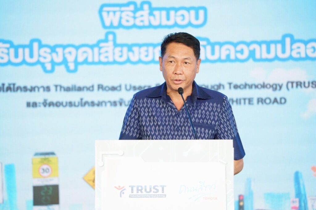 นายนันทวัฒน์ ศรีวรัตน์อัชกุล ผู้ช่วยกรรมการผู้จัดการใหญ่ บริษัท โตโยต้า มอเตอร์ ประเทศไทย จำกัด กล่าวว่า “โตโยต้าให้ความสำคัญกับการยกระดับความปลอดภัยทางถนนมาอย่างต่อเนื่องกว่า 38 ปี ภายใต้โครงการ ‘โตโยต้า ถนนสีขาว’ ซึ่งครอบคลุมทั้ง คน รถ และถนน โดยโครงการนี้สะท้อนการนำเทคโนโลยี Probe Data จาก ‘รถ’ มาวิเคราะห์พฤติกรรมเสี่ยง เพื่อนำไปพัฒนา ‘ถนน’ ให้ปลอดภัยยิ่งขึ้น ควบคู่กับการสร้างความตระหนักแก่ ‘คน’ ในพื้นที่ เพื่อขับเคลื่อนวัฒนธรรมความปลอดภัยอย่างยั่งยืน”