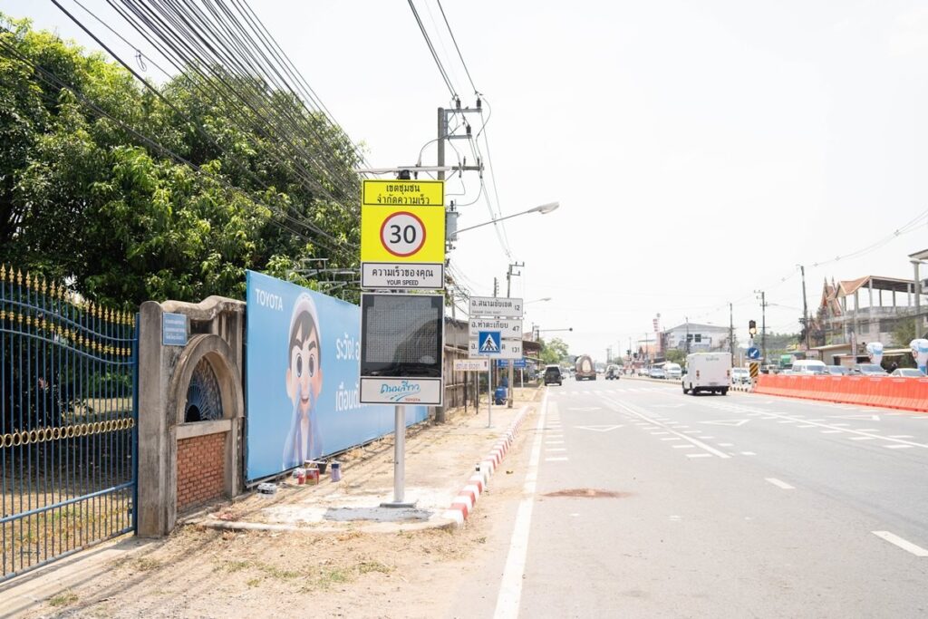 โตโยต้าได้ร่วมมือกับชุมชน และแขวงทางหลวงฉะเชิงเทรา ในการดำเนินกิจกรรมปรับปรุงพื้นที่ บริเวณถนนทางหลวงแผ่นดินหมายเลข 3076 ใกล้จุดกลับรถวัดดอนทอง ตำบลท่าถ่าน ในหลากหลายมิติ ได้แก่ การปรับปรุงทัศนวิสัยในพื้นที่ การทาสีชะลอความเร็ว การทำทางม้าลาย รวมถึงการติดตั้งป้ายจราจร อาทิ ป้ายจำกัดความเร็ว ป้ายลดความเร็ว และป้ายตรวจจับความเร็วอัจฉริยะ เป็นต้น นอกจากนี้ ยังมีการจัดอบรม “โตโยต้าขับขี่ปลอดภัย (Toyota Mobility Driving)” เพื่อส่งเสริมการขับขี่แบบ “เซฟชีวิต เซฟพลังงาน” พร้อมกิจกรรมสร้างความตระหนักด้านความปลอดภัยทางถนน ให้แก่ประชาชนทุกช่วงวัยในพื้นที่ เช่น โรงเรียนพนมอดุลวิทยา โรงเรียนวัดดอนทอง และชุมชนตำบลท่าถ่าน