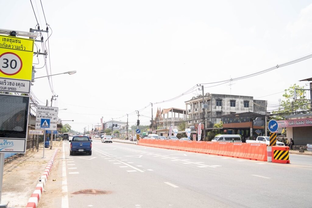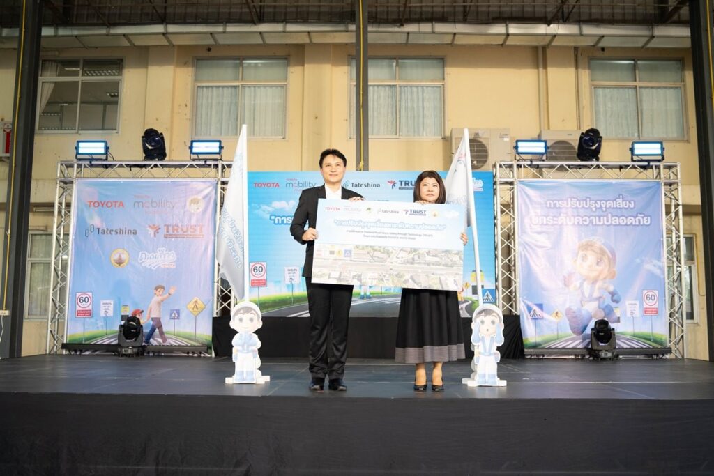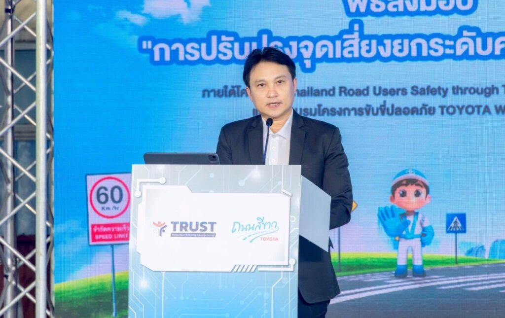 นายนันทวัฒน์ ศรีวรัตน์อัชกุล ผู้ช่วยกรรมการผู้จัดการใหญ่ บริษัท โตโยต้า มอเตอร์ ประเทศไทย จำกัด ส่งมอบ “โครงการปรับปรุงจุดเสี่ยง ยกระดับความปลอดภัย” ที่ดำเนินงานภายใต้โครงการ Thailand Road Users Safety through Technology (TRUST) ณ บริเวณถนนทางหลวงแผ่นดินหมายเลข 3076 ใกล้จุดกลับรถวัดดอนทอง ตำบลท่าถ่าน อำเภอพนมสารคาม จังหวัดฉะเชิงเทรา แก่นางสาวฉัตรประอร นิยม ผู้ว่าราชการจังหวัดฉะเชิงเทรา เมื่อวันที่ 3 เมษายน 2569