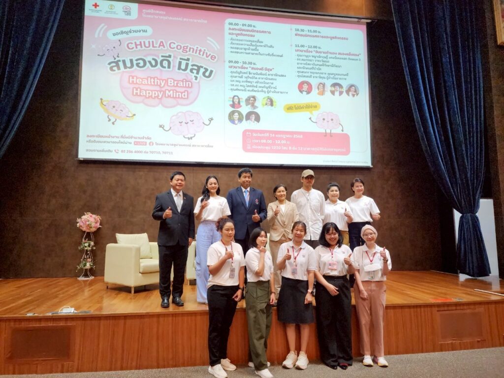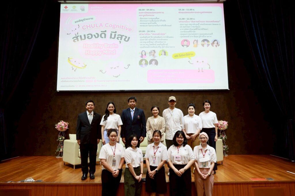 นายสิริวิทย์ ปรีชาศุทธิ์ ผู้อำนวยการฝ่ายวางแผนองค์กร บริษัท โตโยต้า มอเตอร์ ประเทศไทย จำกัด พร้อมด้วย รศ.นพ.ฉันชาย สิทธิพันธุ์ ผู้อำนวยการโรงพยาบาลจุฬาลงกรณ์ และ รศ.ดร.พญ.โสฬพัทธ์ เหมรัญช์โรจน์ หัวหน้าศูนย์ฝึกสมอง โรงพยาบาลจุฬาลงกรณ์ ร่วมเปิดงาน Chula Cognitive “สมองดี มีสุข” ที่ประกอบด้วยงานเสวนา นิทรรศการ และบูธกิจกรรม เพื่อให้ความรู้แก่ผู้สูงอายุที่เข้าร่วมงานกว่า 300 คน ณ อาคารภูมิสิริมังคลานุสรณ์ รพ.จุฬาลงกรณ์ สภากาชาดไทย เมื่อวันที่ 14 กรกฎาคม 2568