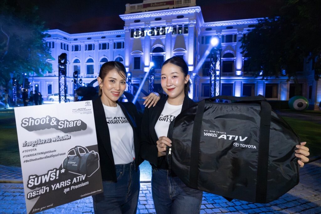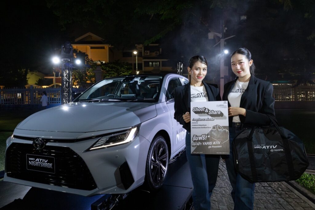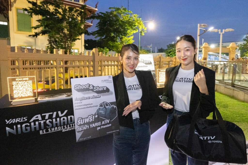 สามารถสัมผัสรถ TOYOTA YARIS ATIV NIGHTSHADE ได้ที่บริเวณมิวเซียมสยาม เดินทางสะดวกเพียงแค่ลงสถานี MRT สนามไชย พร้อมกับรับของที่ระลึกพิเศษได้ง่ายๆ เพียงร่วมกิจกรรมสุดพิเศษ “Shoot & Share: Snap Your SHADE” ถ่ายภาพกับผลงานในสไตล์คุณ พร้อมลงทะเบียนแล้วแชร์ลงโซเชียลมีเดีย และใส่แฮชแท็ก #TOYOTA #YARISATIVNightShade #BeShadesetterสไตล์ที่คุณกำหนด หรือสัมผัสและรับข้อเสนอพิเศษได้ที่โชว์รูมโตโยต้าทั่วประเทศ