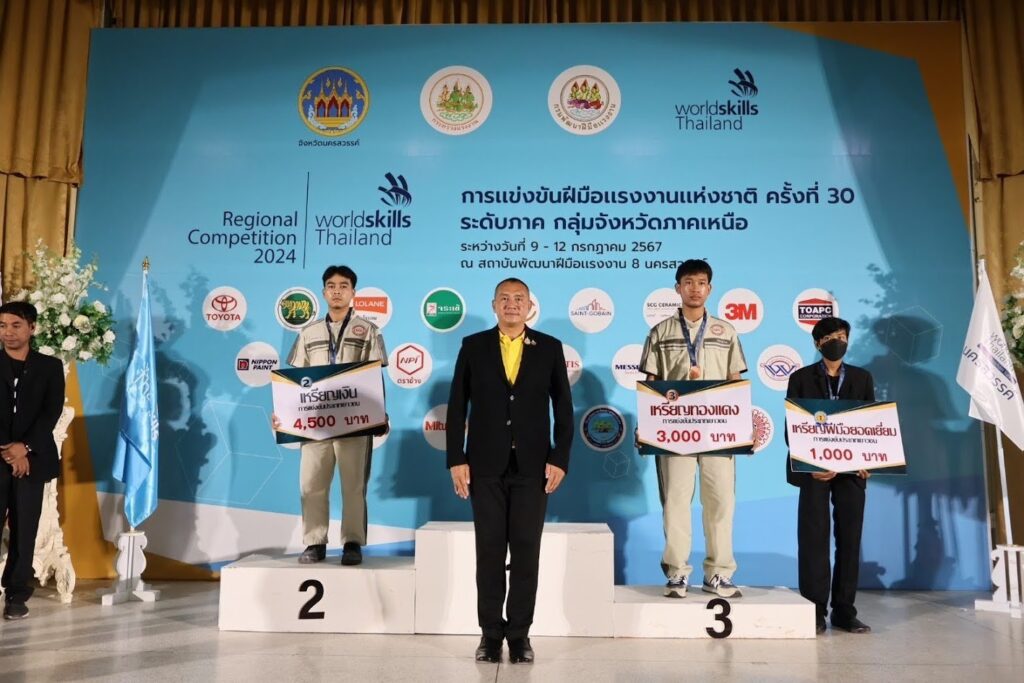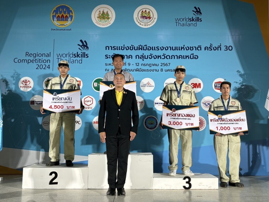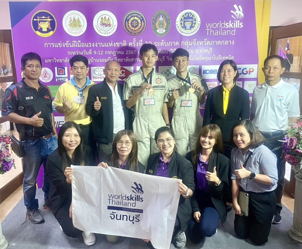 วิทยาลัยเทคโนโลยียานยนต์โตโยต้าส่งนักศึกษาเข้าร่วมการแข่งขันฝีมือแรงงานแห่งชาติ ครั้งที่ 30 ระดับภาค WorldSkills Thailand 2024 – Regional Competition ซึ่งจัดขึ้นระหว่างวันที่ 7-12 กรกฎาคม 2567 เพื่อคัดเลือกผู้แทนระดับภาค เข้าแข่งขันระดับชาติ โดยในการแข่งขันครั้งนี้ วิทยาลัยเทคโนโลยียานยนต์โตโยต้า ได้ส่งนักศึกษาเข้าร่วมการแข่งขัน 2 สาขา ได้แก่ สาขาเทคโนโลยียานยนต์ และสาขาเทคโนโลยีสีรถยนต์ ทั้งกลุ่มจังหวัดภาคกลางและกลุ่มจังหวัดภาคเหนือ โดยคว้ารางวัลได้ดังนี้