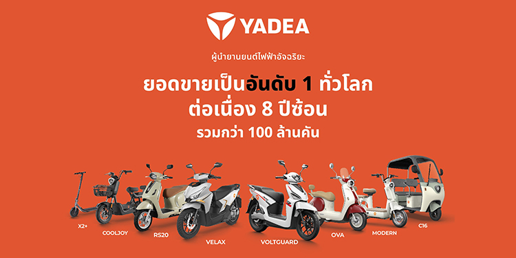 YADEA (ออกเสียงว่า ยา-เดีย) เป็น แบรนด์มอเตอร์ไซค์ไฟฟ้าที่มียอดขายสูงสุดในโลกติดต่อกัน 8 ปีซ้อน (ตั้งแต่ปี 2017– ปี 2024) มียอดขายสะสมกว่า 120 ล้านคัน และมีโรงงานกว่า 10 แห่งทั่วโลก ทั้งในประเทศจีน ไทย อินโดนีเซีย เวียดนาม เม็กซิโก และบราซิล โดยมีสายการผลิตอัจฉริยะรวมกว่า 100 สาย ผลิตได้สูงสุด 30 ล้านคันต่อปี ด้วยระบบอัตโนมัติประสิทธิภาพสูงและความเร็วในการผลิตที่เหนือชั้นจึงสามารถผลิตรถได้ 1 คันในทุกๆ 25 วินาที และคุณภาพผ่านเกณฑ์การผลิตกว่า 99.9% สะท้อนมาตรฐานการผลิตระดับโลก