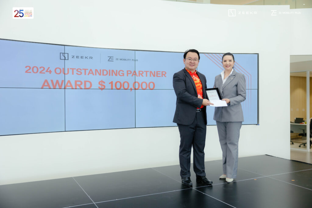 ซีกเกอร์ ซี โมบิลิตี้ พลัส เป็นผู้แทนจำหน่ายที่มียอดขายสูงสุดในประเทศไทย โดยได้รับโล่รางวัล และเงินรางวัลจำนวน 100,000 ดอลล่าร์สหรัฐ ถัดมาเป็นรางวัล ‘2024 SALES AWARD’ มอบให้แก่ อัญญา ชังโชติ และ จักรภัทร ลัมะกานนท์ เจ้าหน้าที่ฝ่ายขายของ ZEEKR House วิภาวดี ที่สามารถ